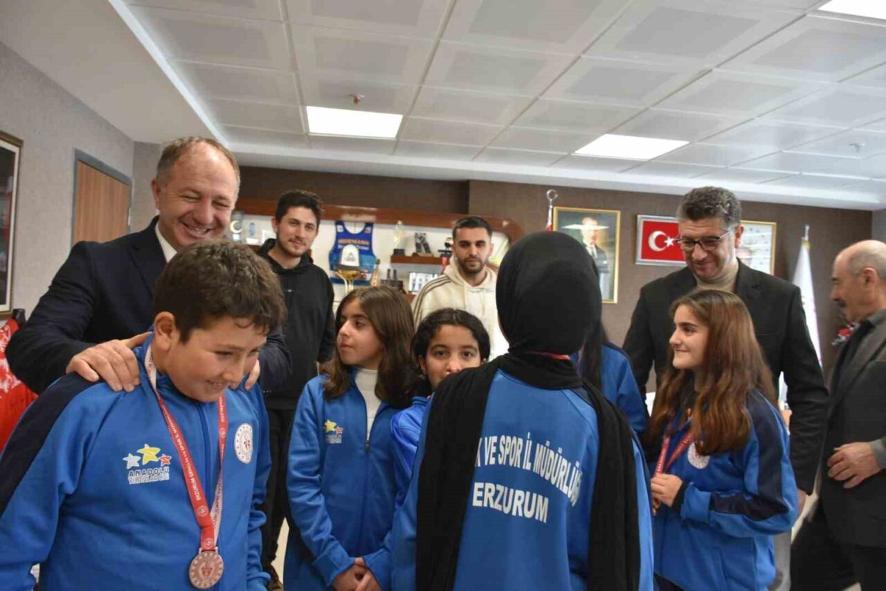 TEKMANLI MİNİK SPORCULAR, ERZURUM GENÇLİK VE SPOR İL MÜDÜRÜ LEVENT ÇAKMUR’U DA ZİYARET ETTİLER.