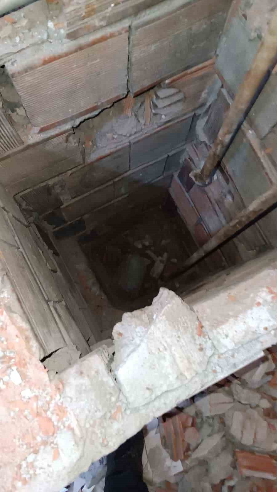 Kocaeli’nin İzmit ilçesinde, telefonunu havalandırma boşluğuna düşüren şahıs, telefonu almak isterken metrelerce yükseklikten düştü. Havalandırma boşluğunda mahsur kalan vatandaşı, itfaiye ekipleri duvarı kırarak kurtardı.
