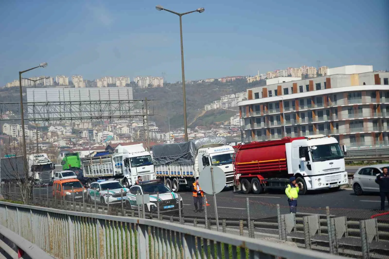 TIR ALEVLERE TESLİM OLURKEN, TEM’İN ANKARA İSTİKAMETİNDE KİLOMETRELERCE ARAÇ KUYRUĞU OLUŞTU.