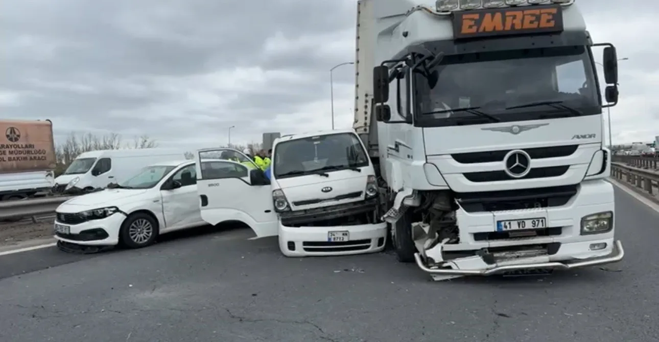 TEM OTOYOLU’NUN KOCAELİ GEÇİŞİNDE TIR, OTOMOBİL VE İKİ KAMYONETİN KARIŞTIĞI ZİNCİRLEME KAZADA 1 KİŞİ YARALANDI