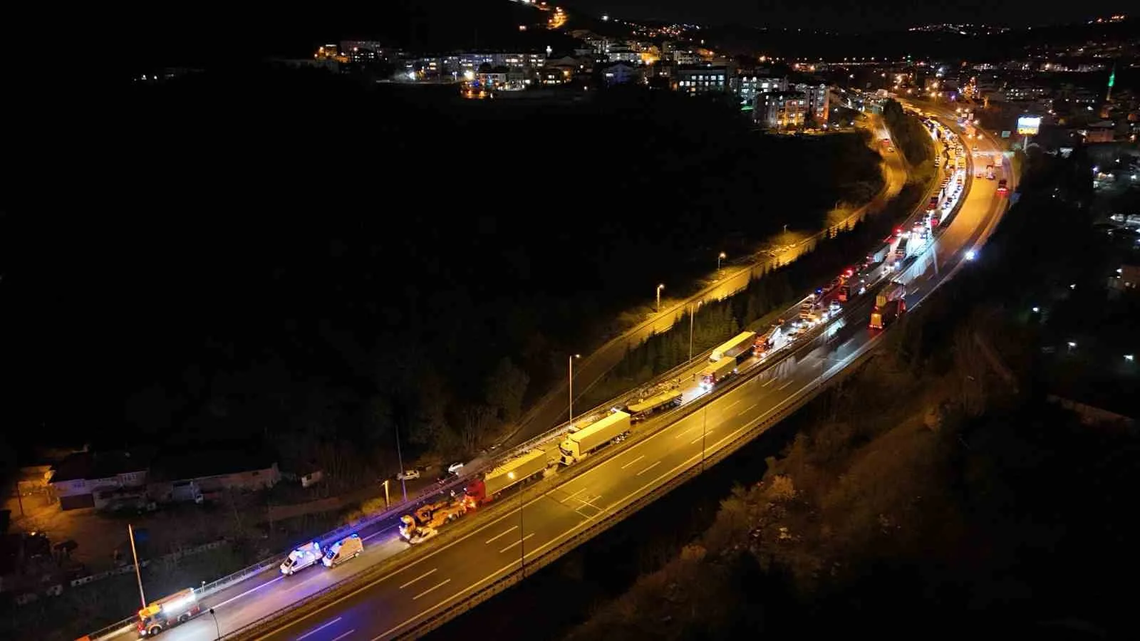 Kaza nedeniyle İstanbul istikameti uzun süre trafiğe kapandı. Karayolları ekipleri yolda temizlik çalışması başlattı. Trafik, tek şeritten kontrollü olarak sağlanıyor.