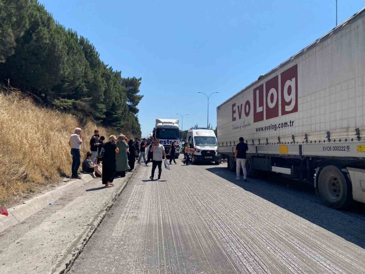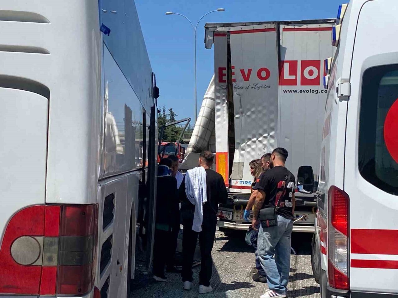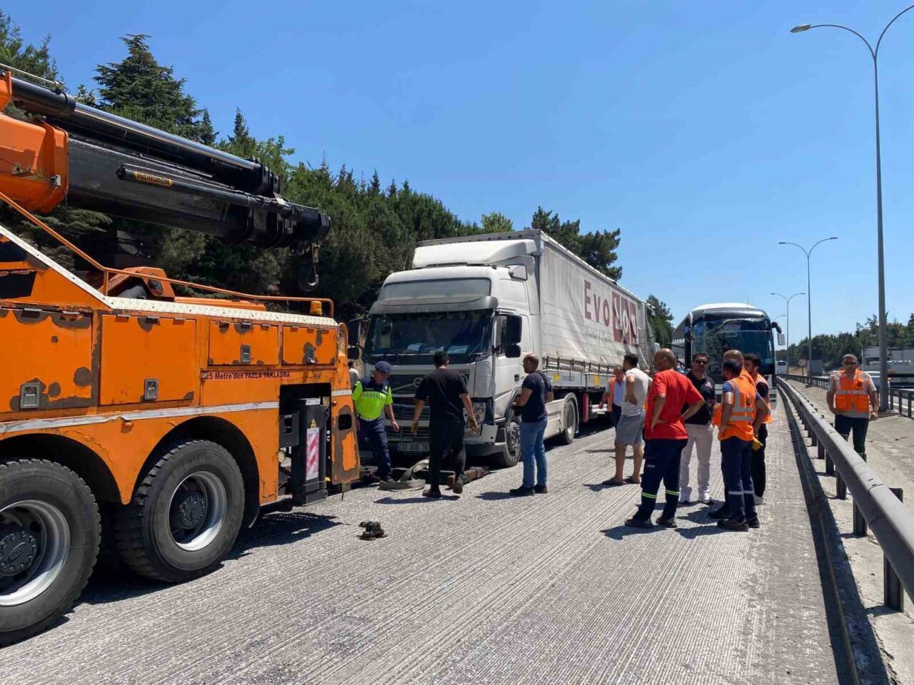 Kazayı anlatan tır sürücüsü, “Gebze istikameti girişinde yol tek şeritti. Seyir halindeyken arkadan gelen Volvo marka tır benim aracıma, tıra da yolcu otobüsü çarptı. Kaza bu şekilde oluştu” dedi.