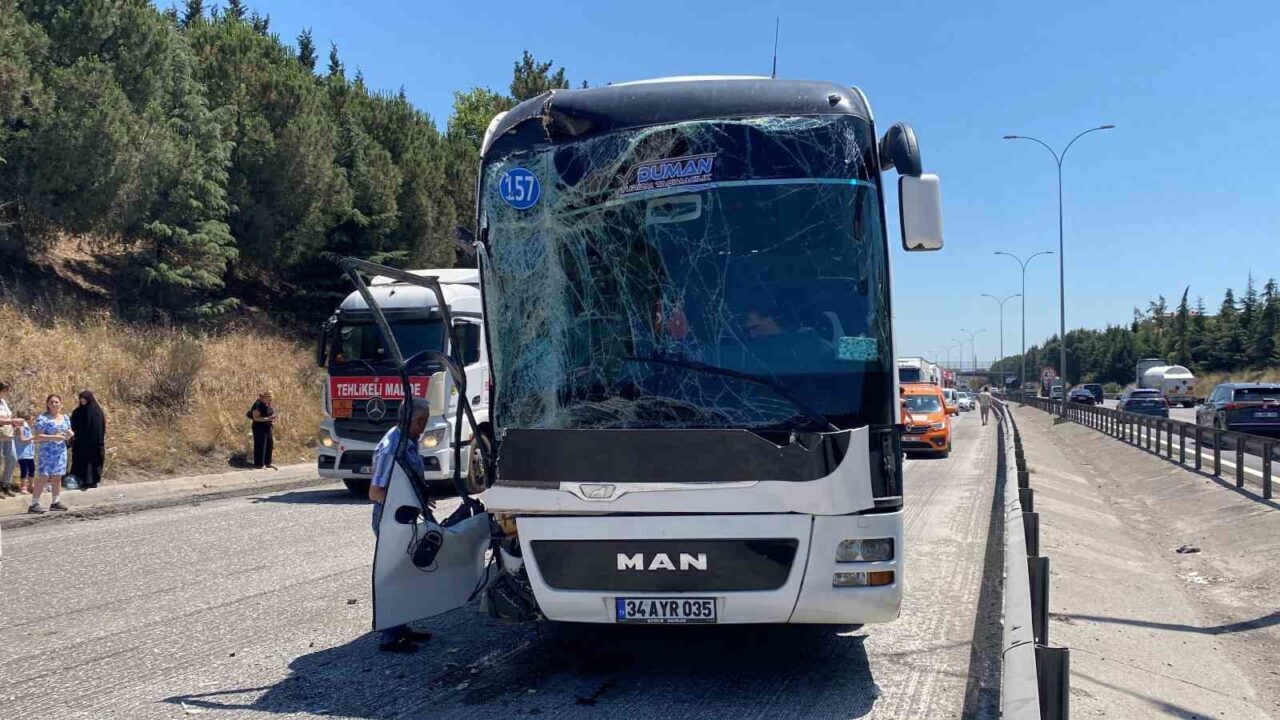 TEM Otoyolu’nun Kocaeli geçişinde 2 tır ve yolcu otobüsünün karıştığı kazada 1’i ağır 3 kişi yaralandı. Kaza nedeniyle Otoyolun İstanbul istikametinde trafik oluştu.
