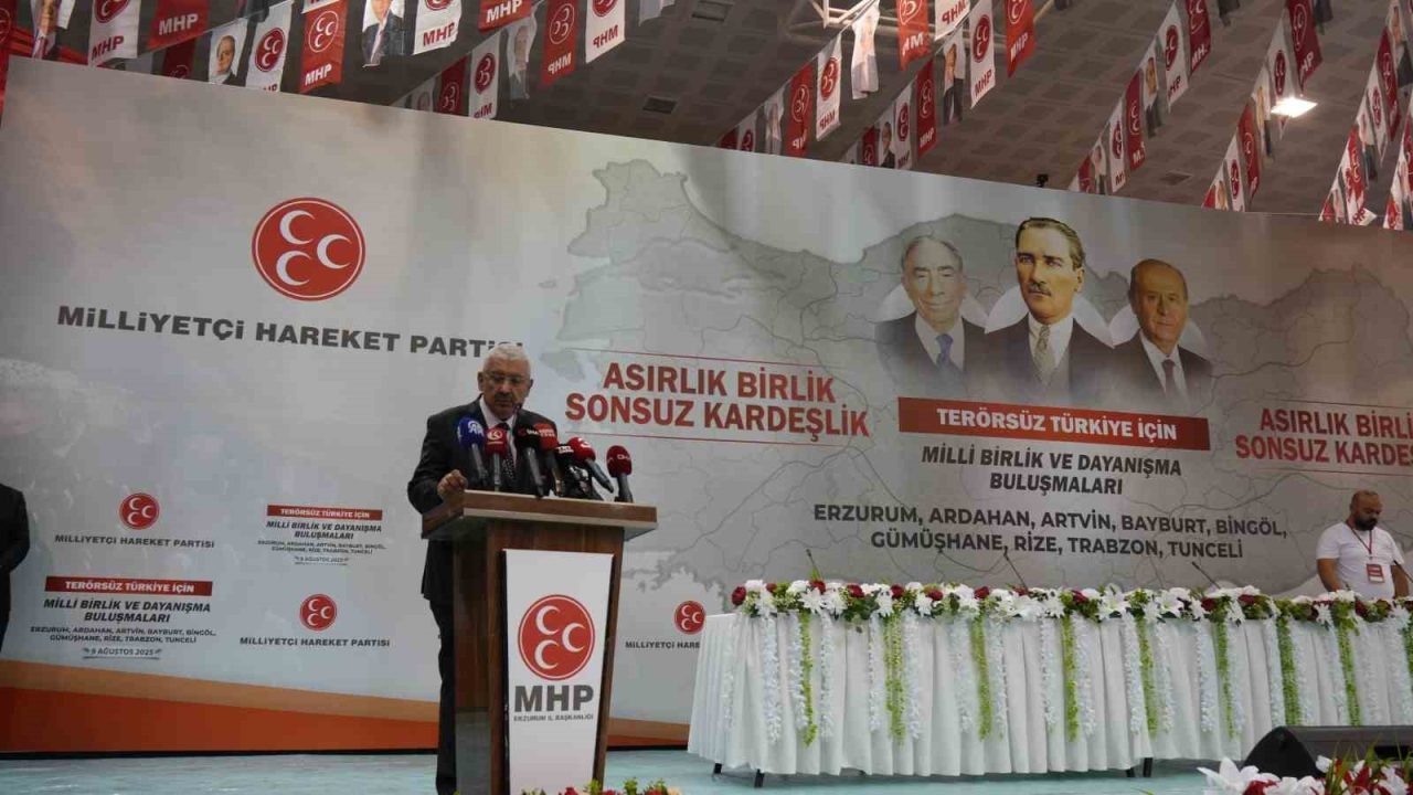 MHP olarak Terörsüz Türkiye için millî birlik ve dayanışma buluşmaları – asırlık birlik sonsuz kardeşlik teması altında bölgesel toplantılarının ilkinin Erzurum’da gerçekleştirildiğini ifade eden Milliyetçi Hareket Partisi Genel Başkan Yardımcısı Prof. Dr. Semih Yalçın, Erzurum bölge toplantısının Ardahan, Artvin, Bayburt, Bingöl, Gümüşhane, Rize, Trabzon ve Tunceli illerini kapsadığını belirtti.