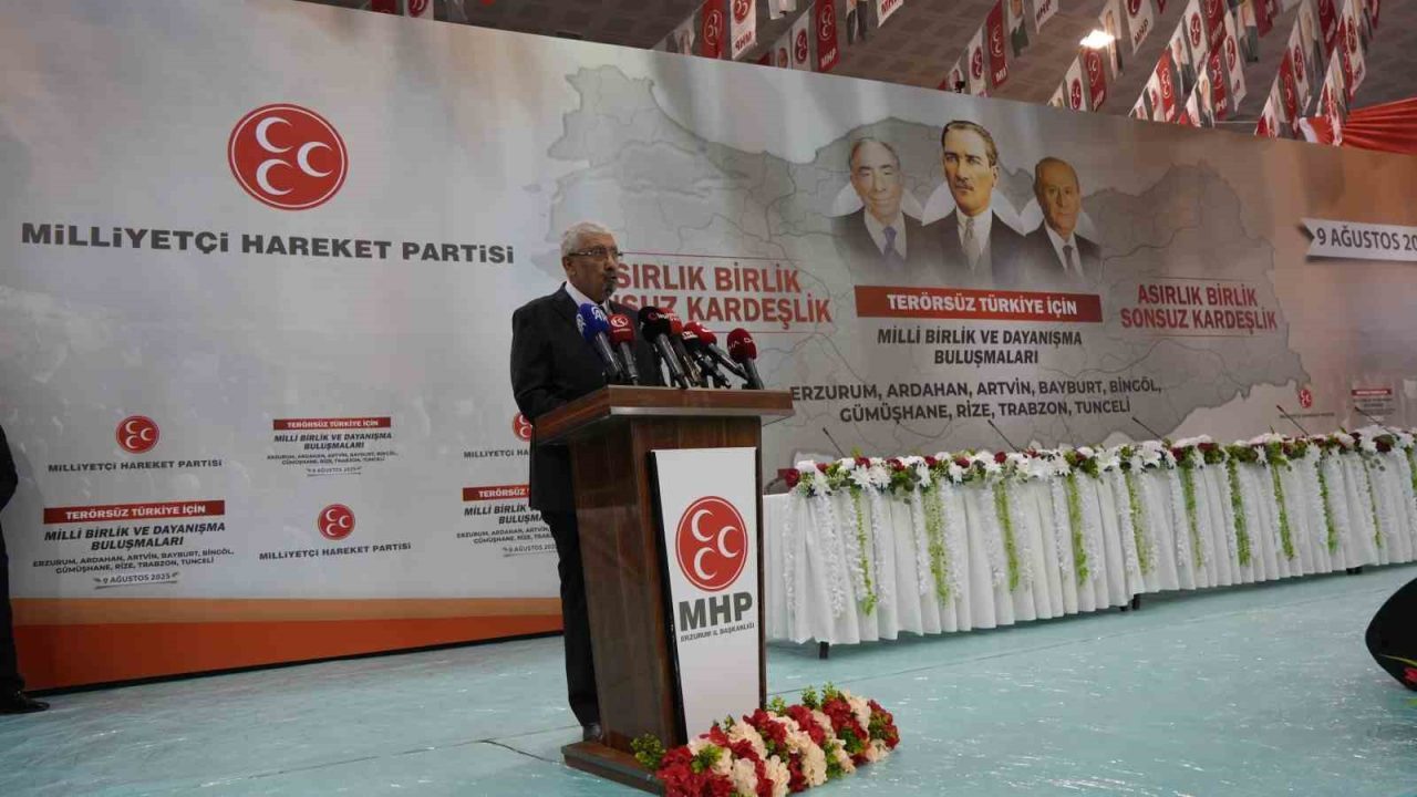 Milliyetçi Hareket Partisi Genel Başkan Yardımcısı İstanbul Milletvekili Prof. Dr. Semih Yalçın, “Terörsüz Türkiye için Millî Birlik ve Dayanışma Buluşmaları – Asırlık Birlik Sonsuz Kardeşlik” temalı Erzurum bölge toplantısında konuştu.