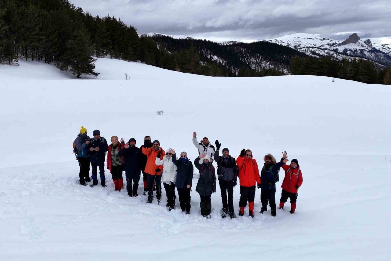 GÜMÜŞHANE DAĞCILIK, DOĞA SPORLARI, GENÇLİK VE SPOR KULÜBÜ DERNEĞİ (GÜDAK) ÜYESİ SPORCULAR, KAR KALINLIĞININ YER YER 1,5 METREYİ BULDUĞU TERSUN DAĞI’NDA NEFES KESEN BİR YÜRÜYÜŞE İMZA ATARAK İSVİÇRE ALPLERİ’Nİ ARATMAYAN MANZARALAR EŞLİĞİNDE 8,5 KİLOMETRE YOL YÜRÜDÜ.