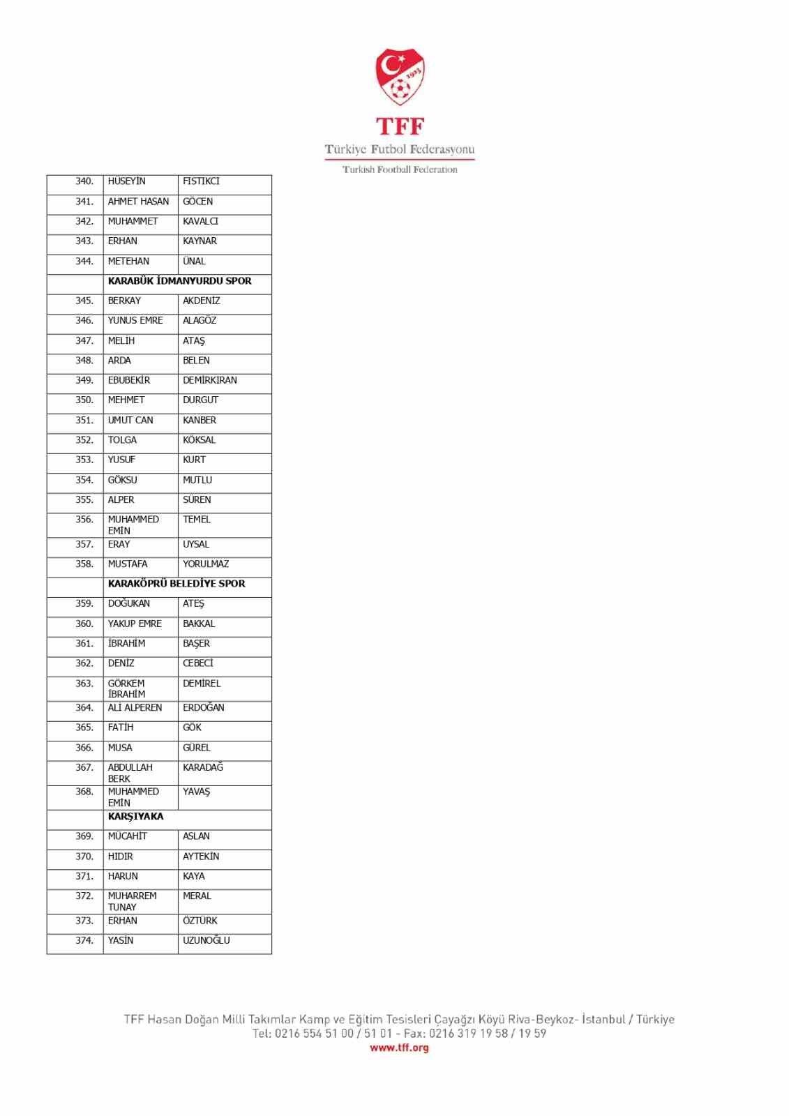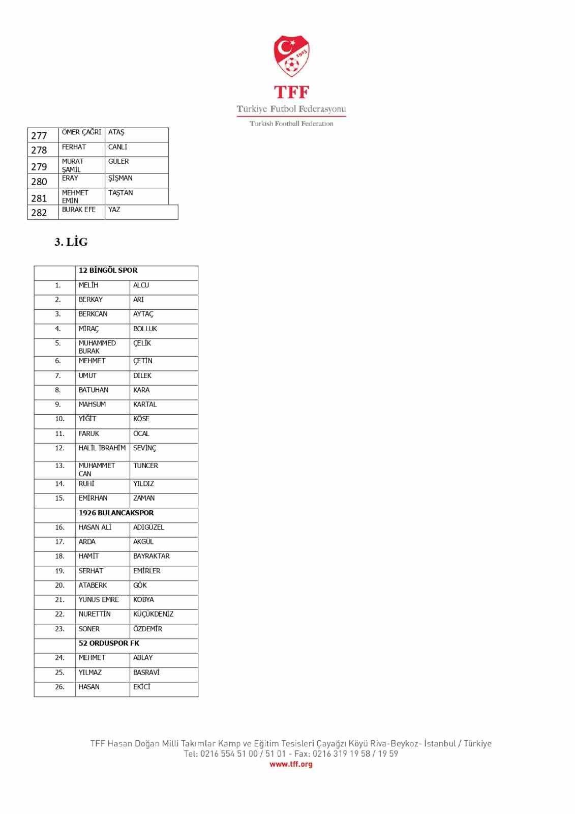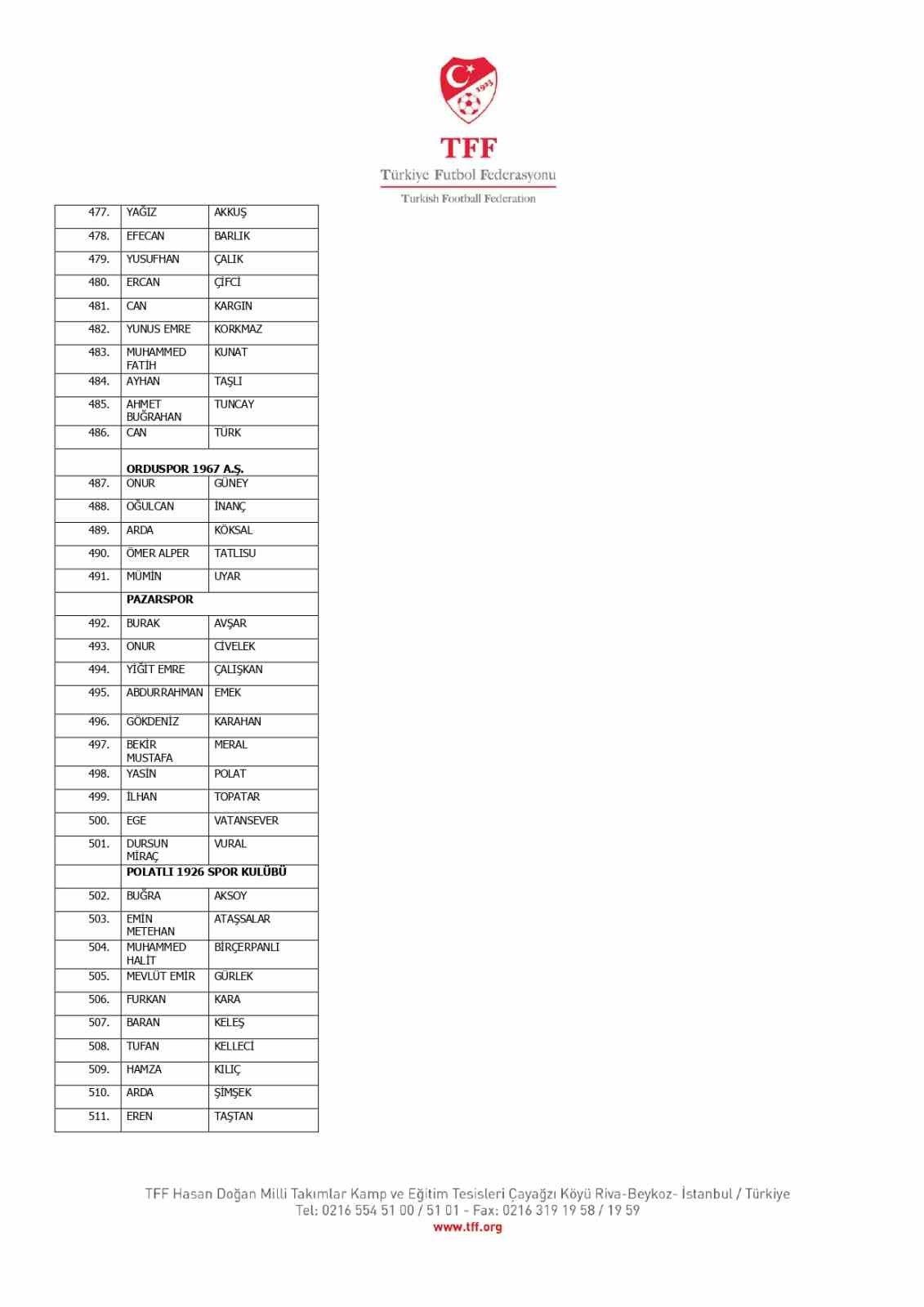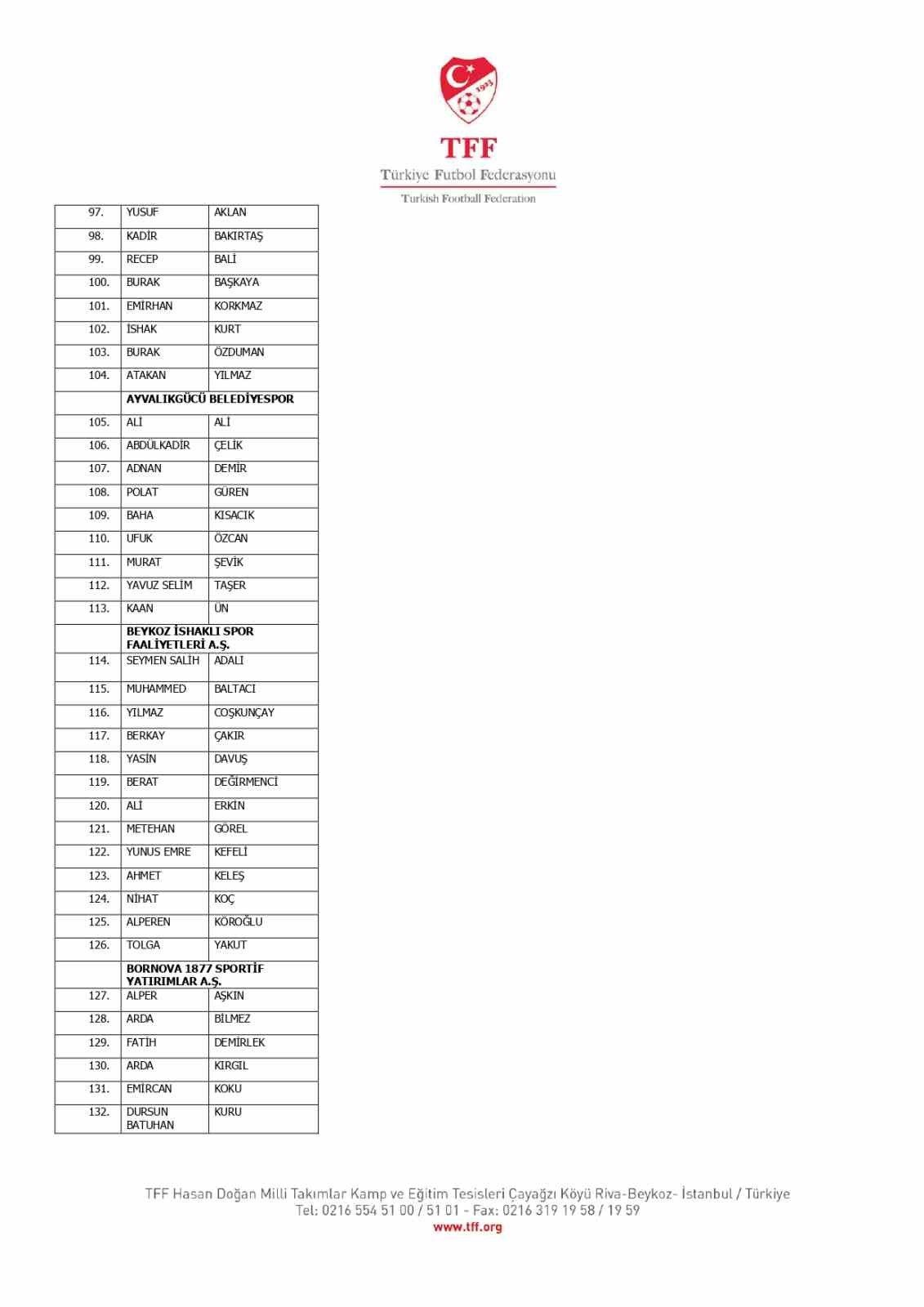 TFF Yönetim Kurulu’nun 10.11.2025 tarihli kararı ile TFF 2. Lig ve TFF 3. Lig müsabaka fikstürlerinin 2 hafta kaydırılmasına karar verilmiştir. TFF Süper Lig ve TFF 1. Lig müsabakaları daha önce ilan edildiği şekilde oynanmaya devam edecektir. Sadece tek bir kere bahis hareketi olduğu görülen 47 futbolcunun disiplin sevk işlemleri, telafisi mümkün olmayan zararlara sebebiyet vermemek adına ilgili kurumlardan gelecek cevabi evraklar neticesinde elde edilecek yeni delil ve bilgiler çerçevesinde değerlendirilecektir. Türkiye Futbol Federasyonu tarafından resmi kurumlarla yapılan yazışmalar devam etmekte olup bu gelecek cevaplara göre soruşturma genişletilerek devam edecektir. Futbol Disiplin Talimatı’nın 57. maddesi uyarınca PFDK’ya sevk edilen 1024 futbolcu aşağıda yer almaktadır” denildi.