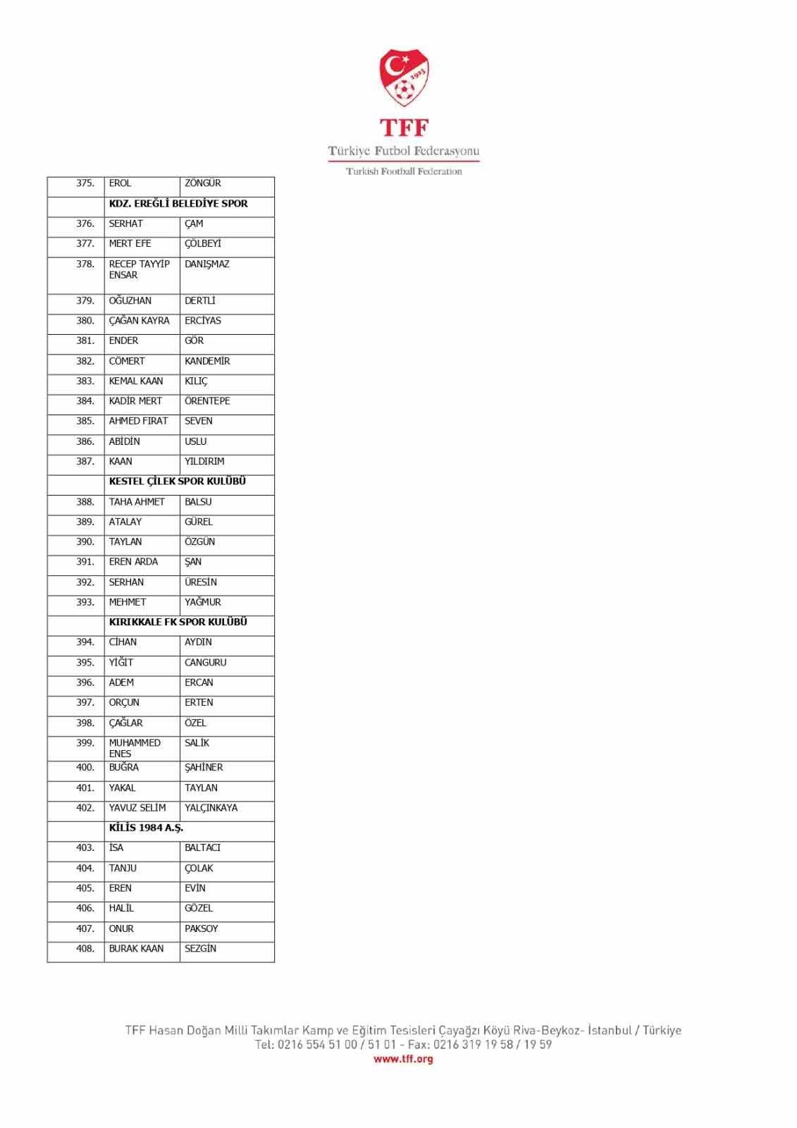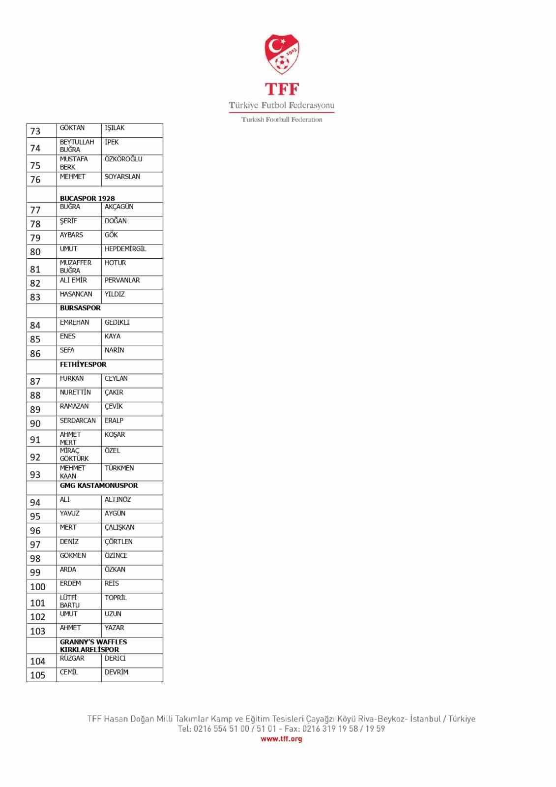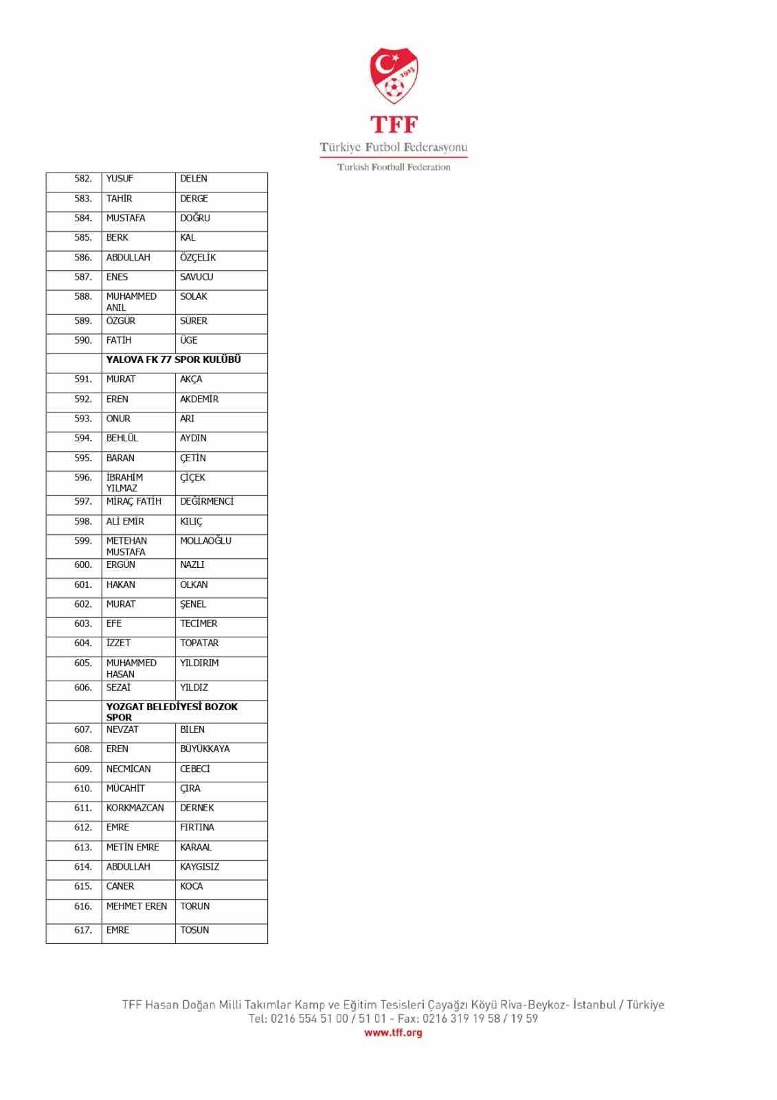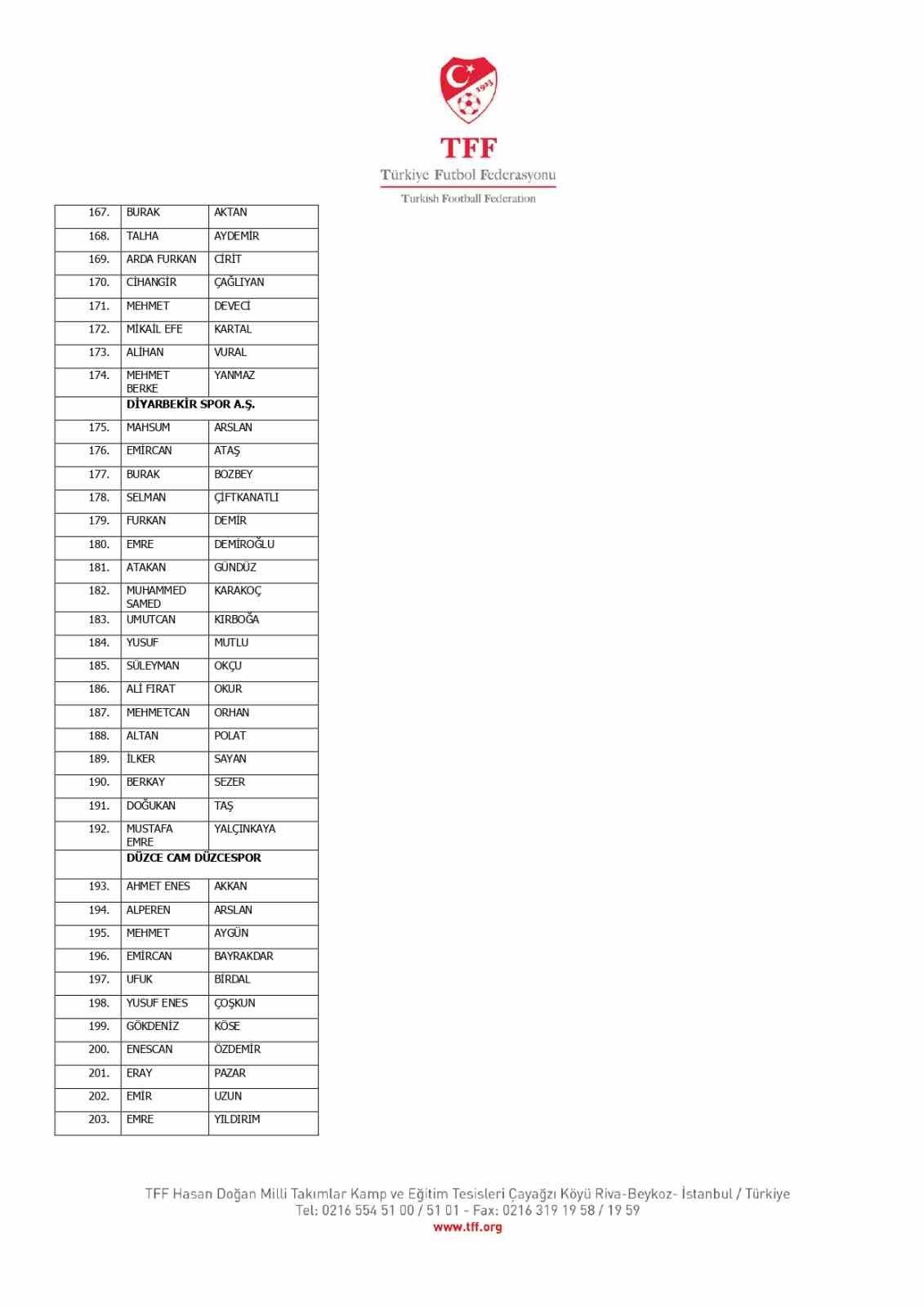 TFF Yönetim Kurulu’nun 10.11.2025 tarihli kararı ile TFF 2. Lig ve TFF 3. Lig müsabaka fikstürlerinin 2 hafta kaydırılmasına karar verilmiştir. TFF Süper Lig ve TFF 1. Lig müsabakaları daha önce ilan edildiği şekilde oynanmaya devam edecektir. Sadece tek bir kere bahis hareketi olduğu görülen 47 futbolcunun disiplin sevk işlemleri, telafisi mümkün olmayan zararlara sebebiyet vermemek adına ilgili kurumlardan gelecek cevabi evraklar neticesinde elde edilecek yeni delil ve bilgiler çerçevesinde değerlendirilecektir. Türkiye Futbol Federasyonu tarafından resmi kurumlarla yapılan yazışmalar devam etmekte olup bu gelecek cevaplara göre soruşturma genişletilerek devam edecektir. Futbol Disiplin Talimatı’nın 57. maddesi uyarınca PFDK’ya sevk edilen 1024 futbolcu aşağıda yer almaktadır” denildi.