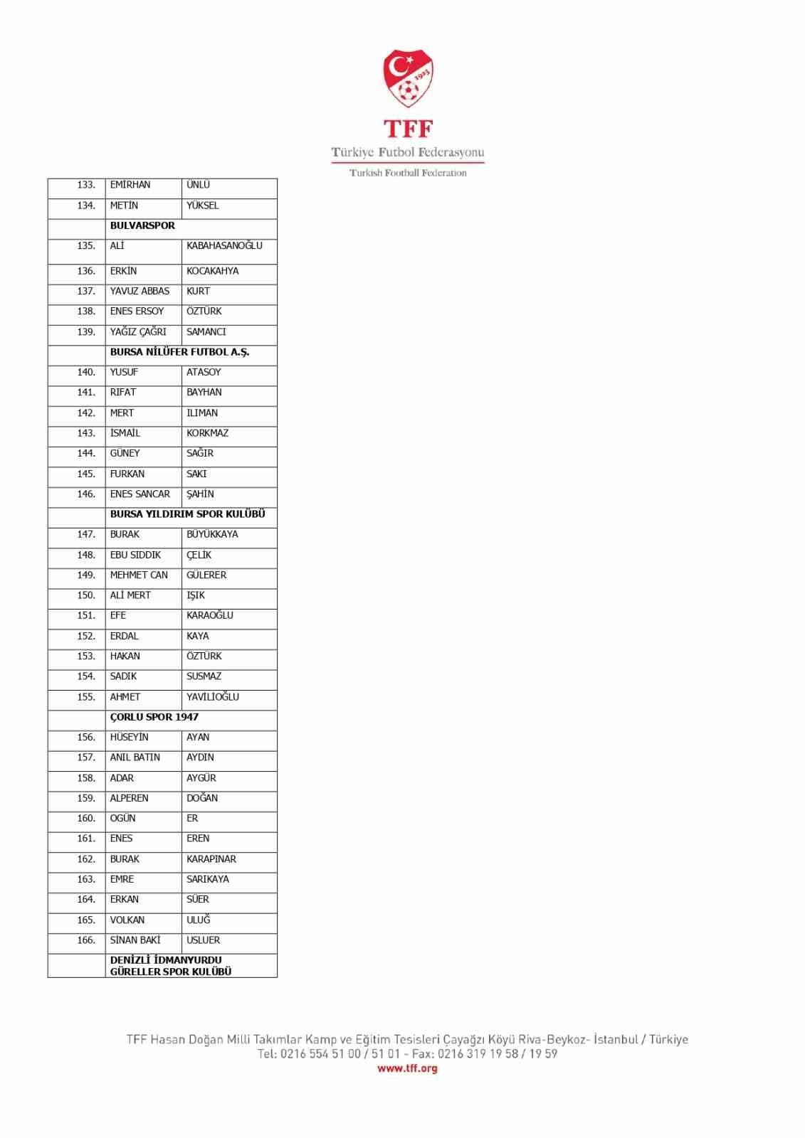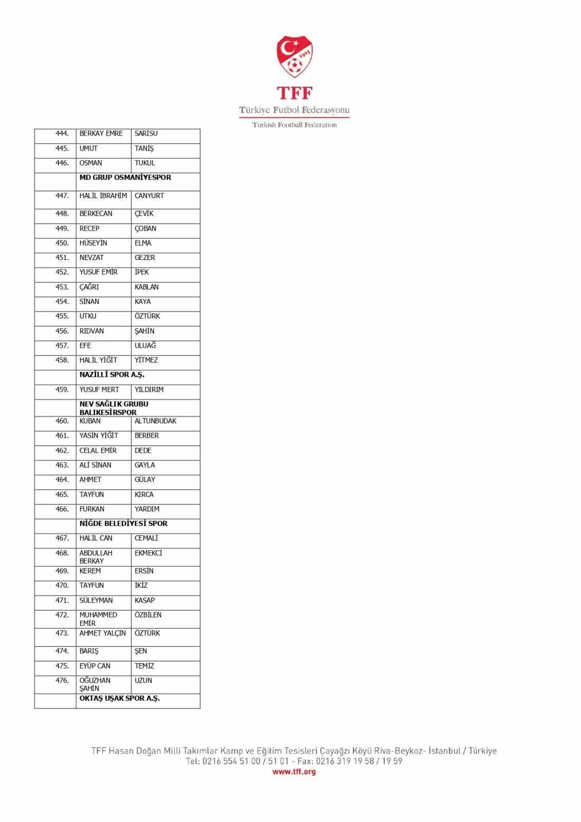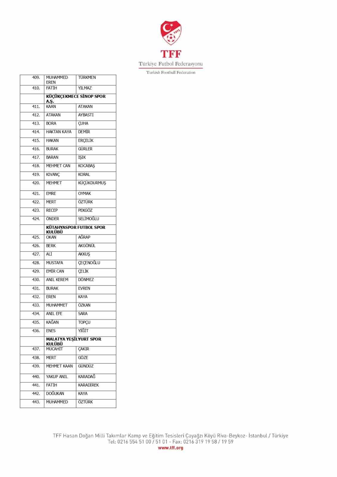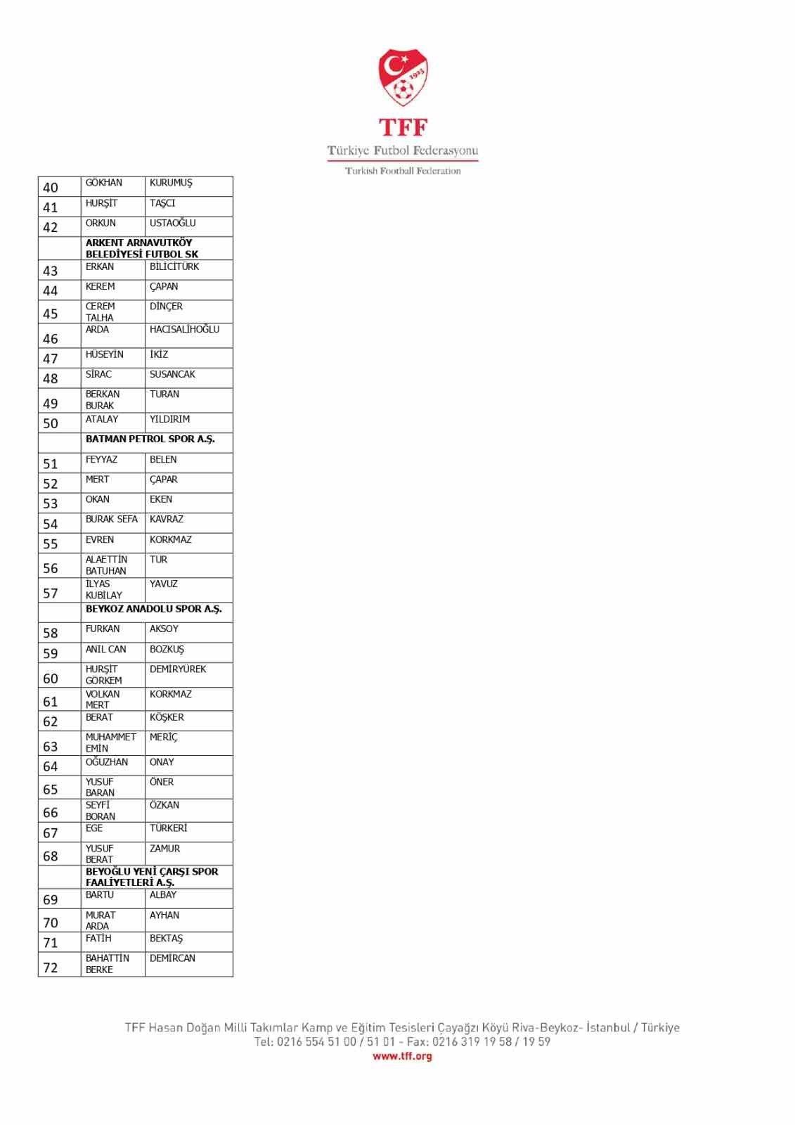 TFF Yönetim Kurulu’nun 10.11.2025 tarihli kararı ile TFF 2. Lig ve TFF 3. Lig müsabaka fikstürlerinin 2 hafta kaydırılmasına karar verilmiştir. TFF Süper Lig ve TFF 1. Lig müsabakaları daha önce ilan edildiği şekilde oynanmaya devam edecektir. Sadece tek bir kere bahis hareketi olduğu görülen 47 futbolcunun disiplin sevk işlemleri, telafisi mümkün olmayan zararlara sebebiyet vermemek adına ilgili kurumlardan gelecek cevabi evraklar neticesinde elde edilecek yeni delil ve bilgiler çerçevesinde değerlendirilecektir. Türkiye Futbol Federasyonu tarafından resmi kurumlarla yapılan yazışmalar devam etmekte olup bu gelecek cevaplara göre soruşturma genişletilerek devam edecektir. Futbol Disiplin Talimatı’nın 57. maddesi uyarınca PFDK’ya sevk edilen 1024 futbolcu aşağıda yer almaktadır” denildi.
