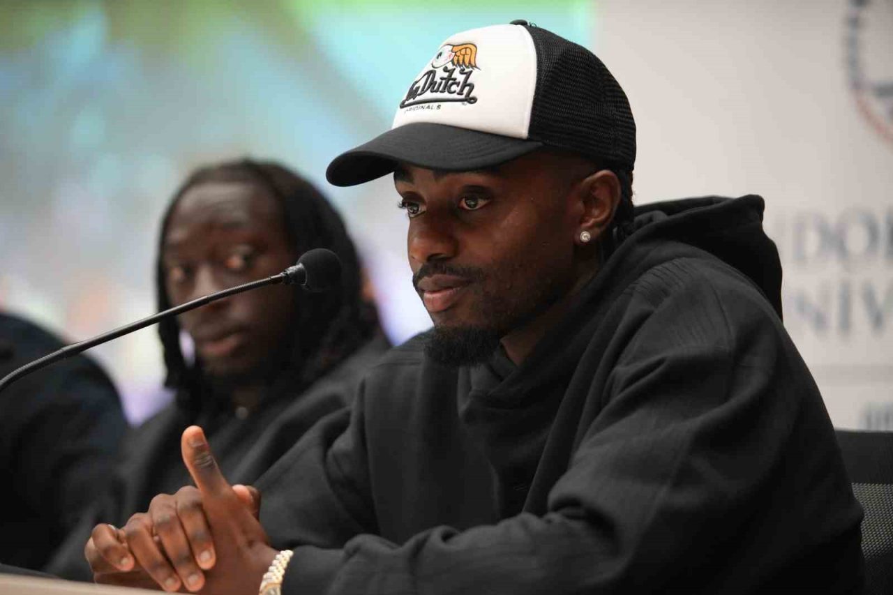 Tanguy Coulibaly ise “Benim için iletişim kurmak anlamında dil asla bir bariyer değil. Biz Fransa’dan farklı bir kültürden, farklı bir dil konuşarak geldik ama Türkçeyi öğrenmeye çalışıyoruz. Farklı bir ülkeye geldik ve o ülkenin kültürüne adapte olmaya çalışıyoruz. Türkiye’ye geldiğimde herhangi bir zorlukla karşılaşmadım. Beni şaşırtan çok fazla bir şeyler olmadı. Çünkü burada çok yeniyim. Türkçe’nin zor olduğu düşüncesindeyim ama emin olun bu dili çok çabuk öğreneceğim. Türk yemekleri çok çılgınca ve inanılmaz lezzetli. Şimdiye kadar denemiş olduğum yemekler çok iyi. Perşembe günü oynayacağımız bu maçı umarım kazanabiliriz. Takımımızda bu maçı kazanabilecek kalite var. Avrupa’da gidebilecek kadar uzak yerlere gitmek istiyoruz. Her şeyden önce maç maç gitmek gerekiyor” ifadelerini kullandı.