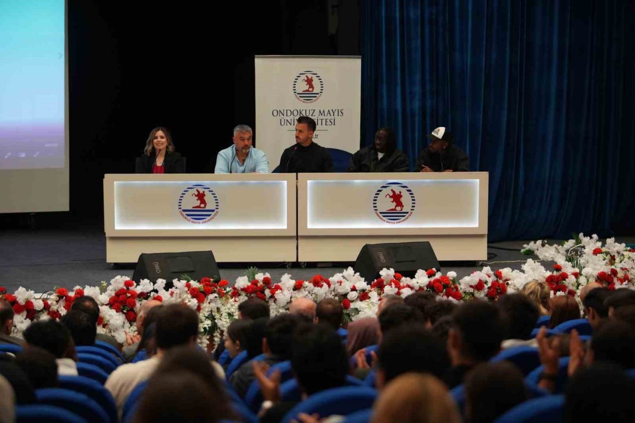 Samsunspor Teknik Direktör Thomas Reis ile futbolcular Tanguy Coulibaly ve Antoine Makoumbou, Ondokuz Mayıs Üniversitesi (OMÜ) Çeviri Topluluğu tarafından düzenlenen “Kuzeyin Kralı OMÜ’de” isimli söyleşi etkinliğine katıldı. Teknik Direktör Reis ve futbolcular takımdaki iletişimden Samsun’daki yaşama, Türk yemeklerinden 23 Ekim Perşembe günü oynayacakları Dinamo Kiev maçını değerlendirdi.