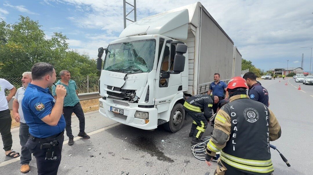 Olay, Emekler Mahallesi Sapanca Yolu Caddesi’nde meydana geldi. Edinilen bilgiye göre, H.E. (22) idaresindeki 41 APH 855 plakalı tır, plakası ve sürücüsü öğrenilemeyen kamyona çarptı. Çarpışmanın etkisiyle tır sürücüsü araç içinde sıkıştı. İhbar üzerine olay yerine itfaiye, sağlık ve polis ekipleri sevk edildi. İtfaiye ekiplerince araç içinden çıkarılan sürücü, ilk müdahalesinin ardından hastaneye kaldırıldı.