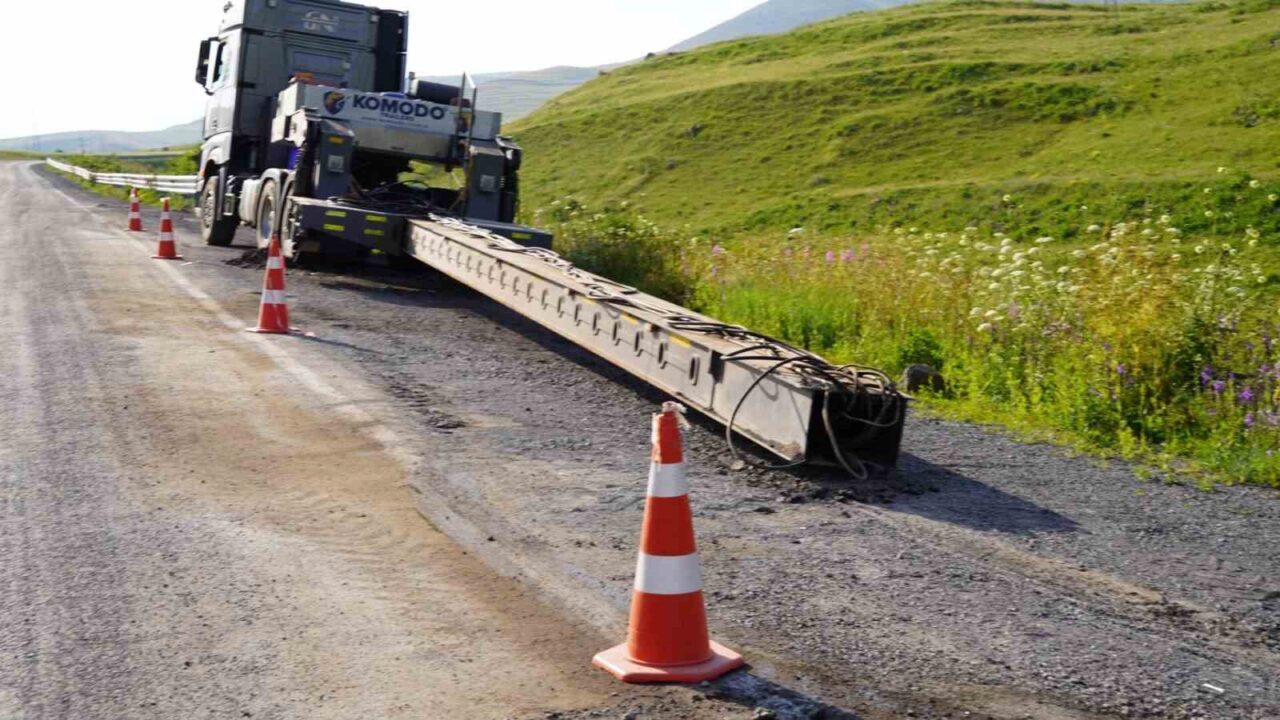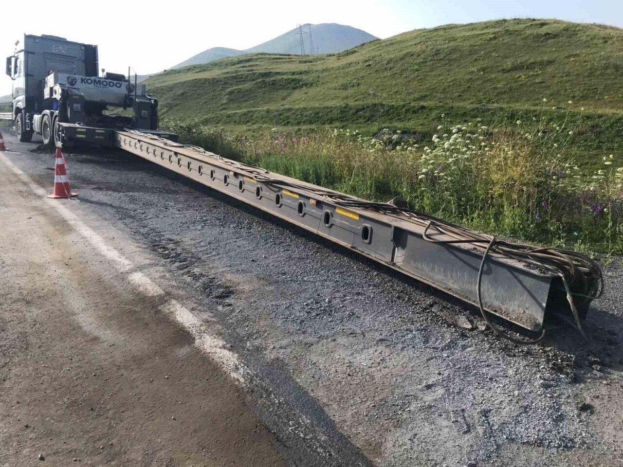 Ardahan in Posof ilçesinde seyir halindeki tırdan ayrılan dozer yüklü dorse dereye uçtu.