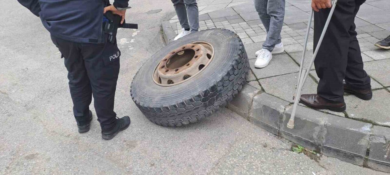 Edinilen bilgiye göre, Araklı ilçesinin Trabzon Caddesinde seyir halinde giden 61 AFH 765 plakalı tırdan fırlayan lastik yol kenarında bulunan 06 DSZ 50 plakalı motosiklete çarparak savurdu. Motosiklet sürücüsü, tam aracına bineceği esnada gelen tehlikeden son anda kurtuldu. Olay güvenlik kameralarına saniye saniye yansıdı. Lastiğin geliş şiddetiyle yoldan savrulan motor sürücüsü hafif yaralanırken, olay yerine gelen 112 Acil Yardım ekipleri tarafından hastaneye sevk edildi. Fırlayan lastiğin yolda veya kaldırımda bulunan bir başka kişiye çarpmaması ise sevindirdi.