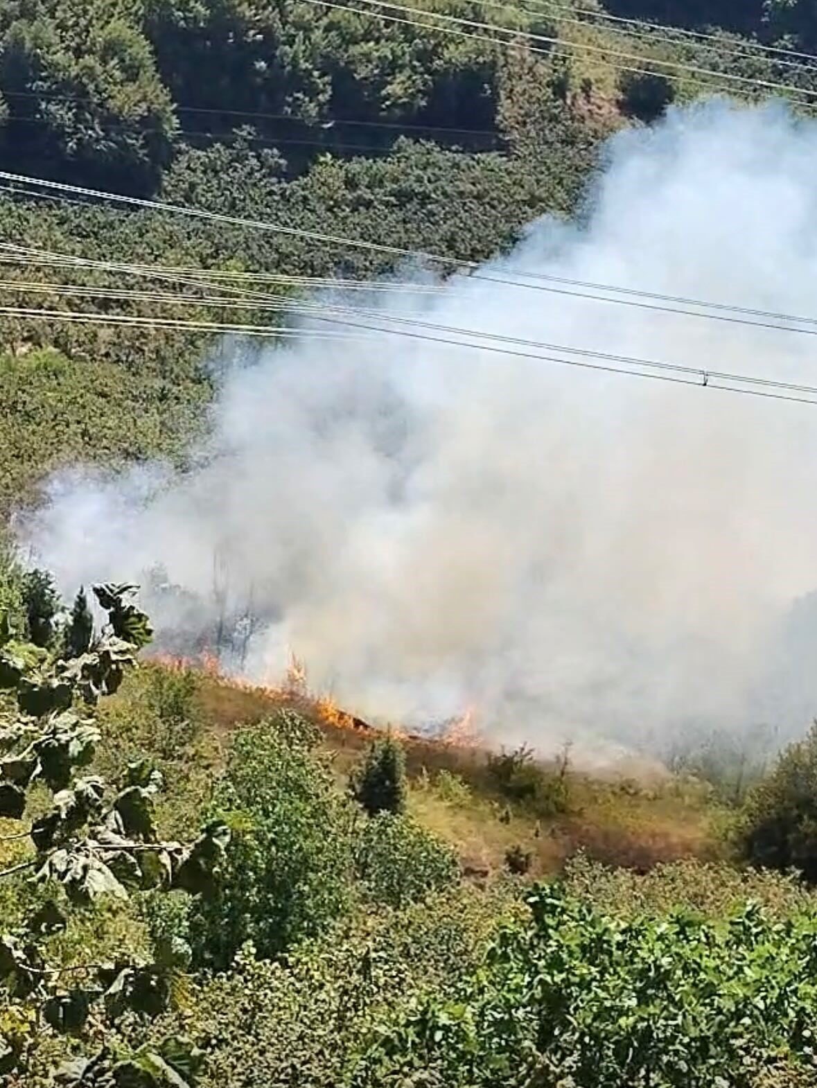 Zonguldak’ın Kdz. Ereğli’ye bağlı Kaymaklar köyünde fındık bahçesinde tırpan motorunun aniden patlaması sonucu örtü yangını çıktı.
