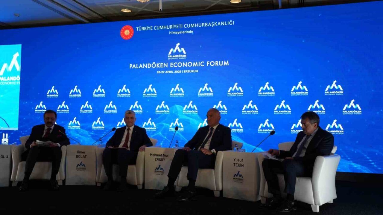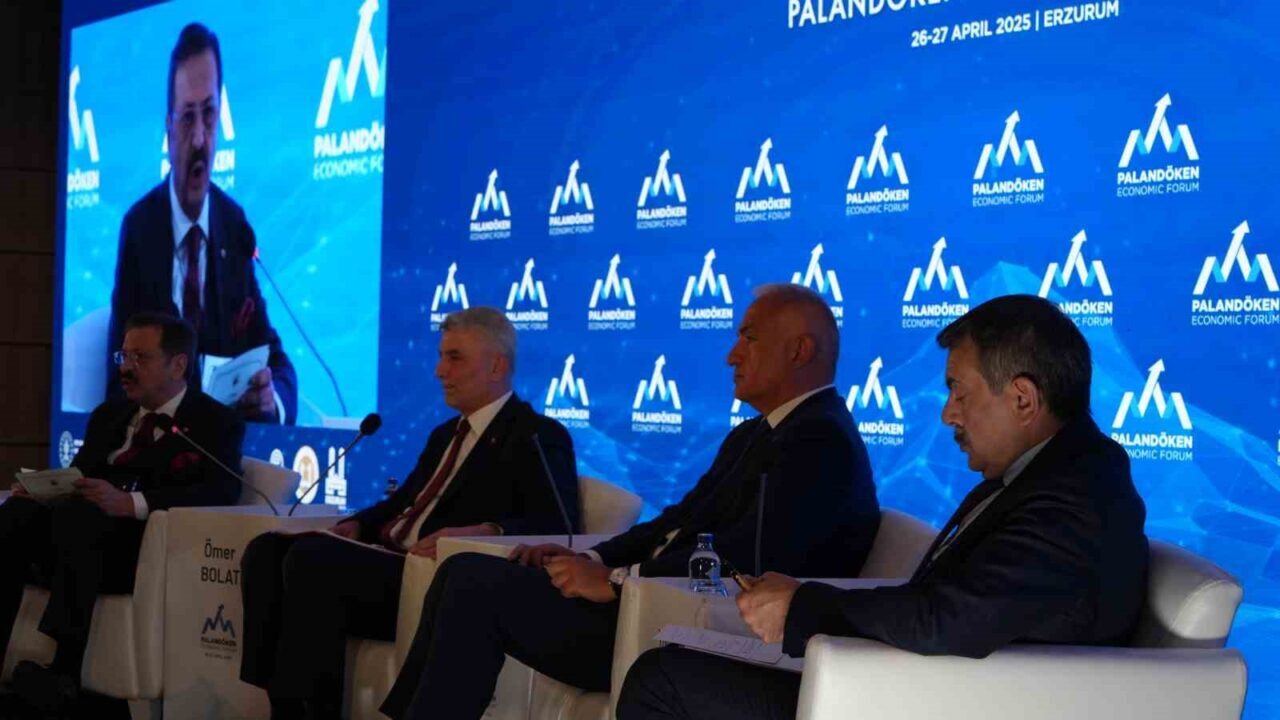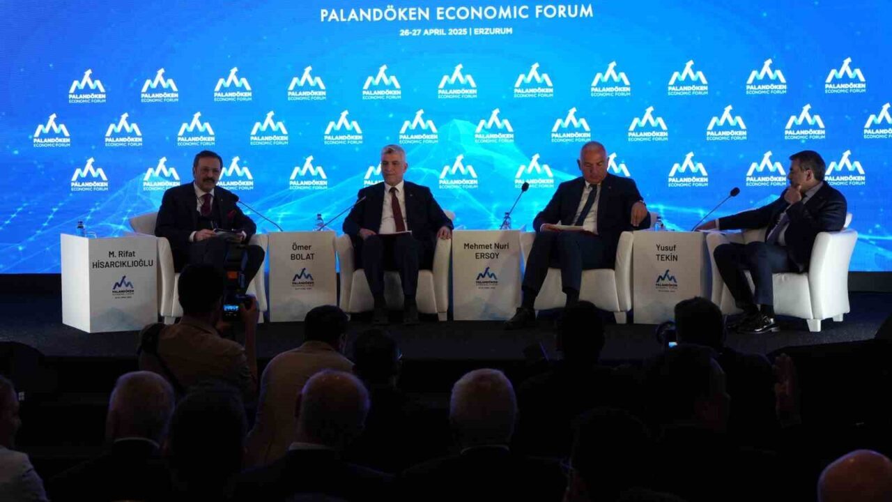 Ekonomik İş Birliği Teşkilatı Ülkeleri EİT 2025 Erzurum Turizm Başkenti etkinlikleri kapsamında “Ekonominin kalbi bu yıl Palandöken’de atıyor” sloganıyla düzenlenen Palandöken Ekonomi Forumu’nun ilk oturumu Ticaret Bakanı Ömer Bolat, Kültür ve Turizm Bakanı Mehmet Nuri Ersoy ve Milli Eğitim Bakanı Yusuf Tekin’in katılımıyla başladı.