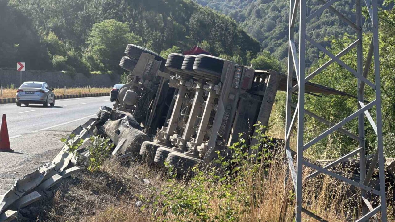 Kaza, Zonguldak-Ankara kara yolu Sapça mevkiinde sabah saatlerinde meydana geldi. Edinilen bilgiye göre, S.D. idaresindeki 41 NP 433 plakalı tomruk yüklü tır, kontrolden çıkarak yan yattı. Kazanın ardından tırın dorsesinde yüklü tomruklar yola savruldu. Bölgeden geçen diğer sürücülerin ihbarı üzerine olay yerine sağlık, polis ve jandarma ekipleri sevk edildi. Tır sürücüsünün sağlık durumunun iyi olduğu öğrenilirken, ekipler bölgede ikinci bir kazanın yaşanmaması için güvenlik önlemleri aldı. Devrilen tırın ve yola saçılan tomrukların kaldırılması için kara yolları ekipleri de çalışma başlattı. Kaza nedeniyle trafik kontrollü olarak tel şeritten sağlandı. Kazayla ilgili inceleme başlatıldı.