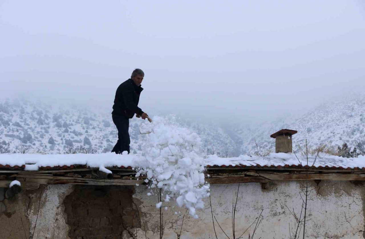 Kışın yüksek kesimlerde zor geçtiğini belirten Ali Demir, “Evin damı kardan dolayı akmasın diye küreme işi yapıyorum. Maddi durumumuz iyi olmadığı için mecburen toprak damlı evde yaşıyoruz. Böyle olunca da her kış bacalardaki karı sürekli kürüyoruz” dedi.