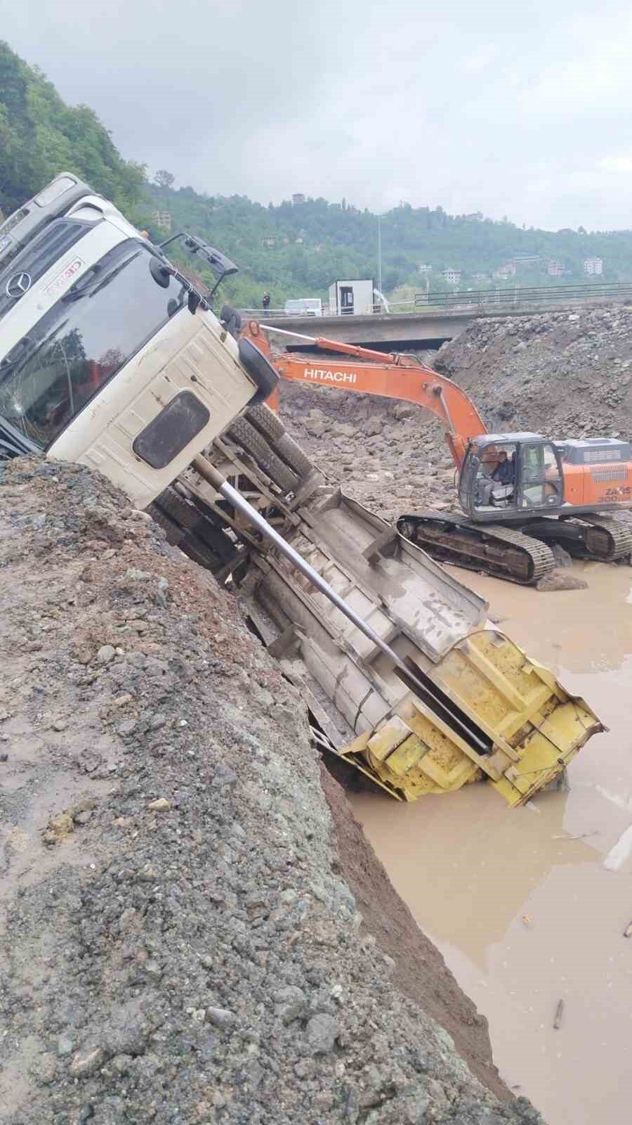 Trabzon’un Araklı ilçesi Karadere yolu Kaşıkçı mevkiinde yol yapım çalışmalarında çalışan taş kamyonu dolgu malzemesi boşalttığı esnada devrildi. Kaza sonucu Trabzon-Bayburt yolu ulaşıma kapandı.