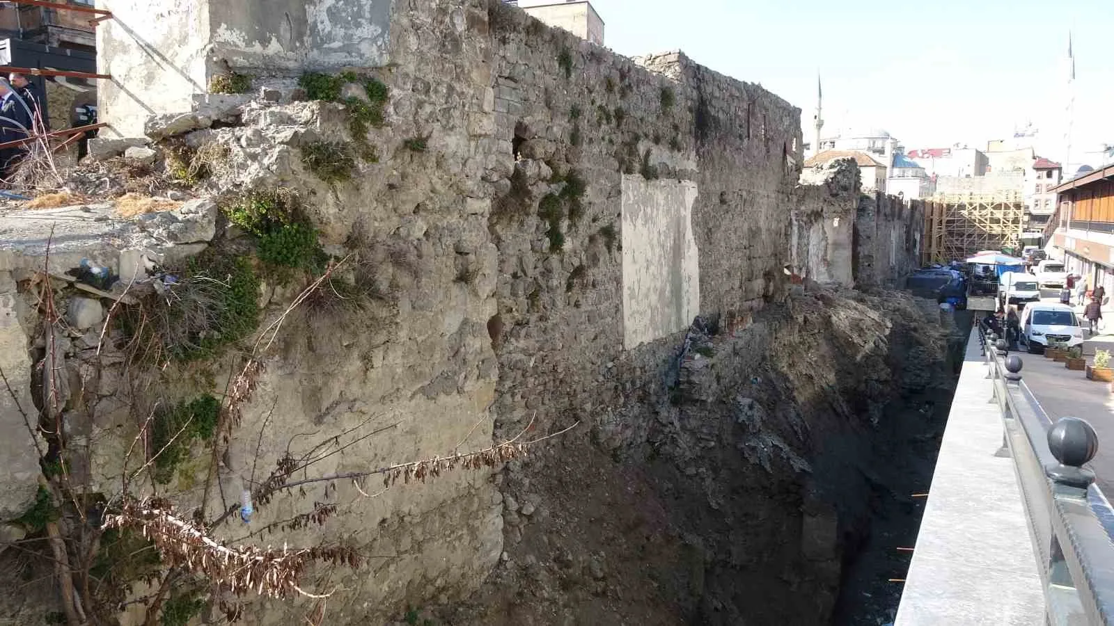 ORTAHİSAR İLÇESİ KADINLAR HALİ YANINDAKİ ALANDA SUR DUVARLARININ RESTORASYON ÇALIŞMALARI SÜRÜYOR