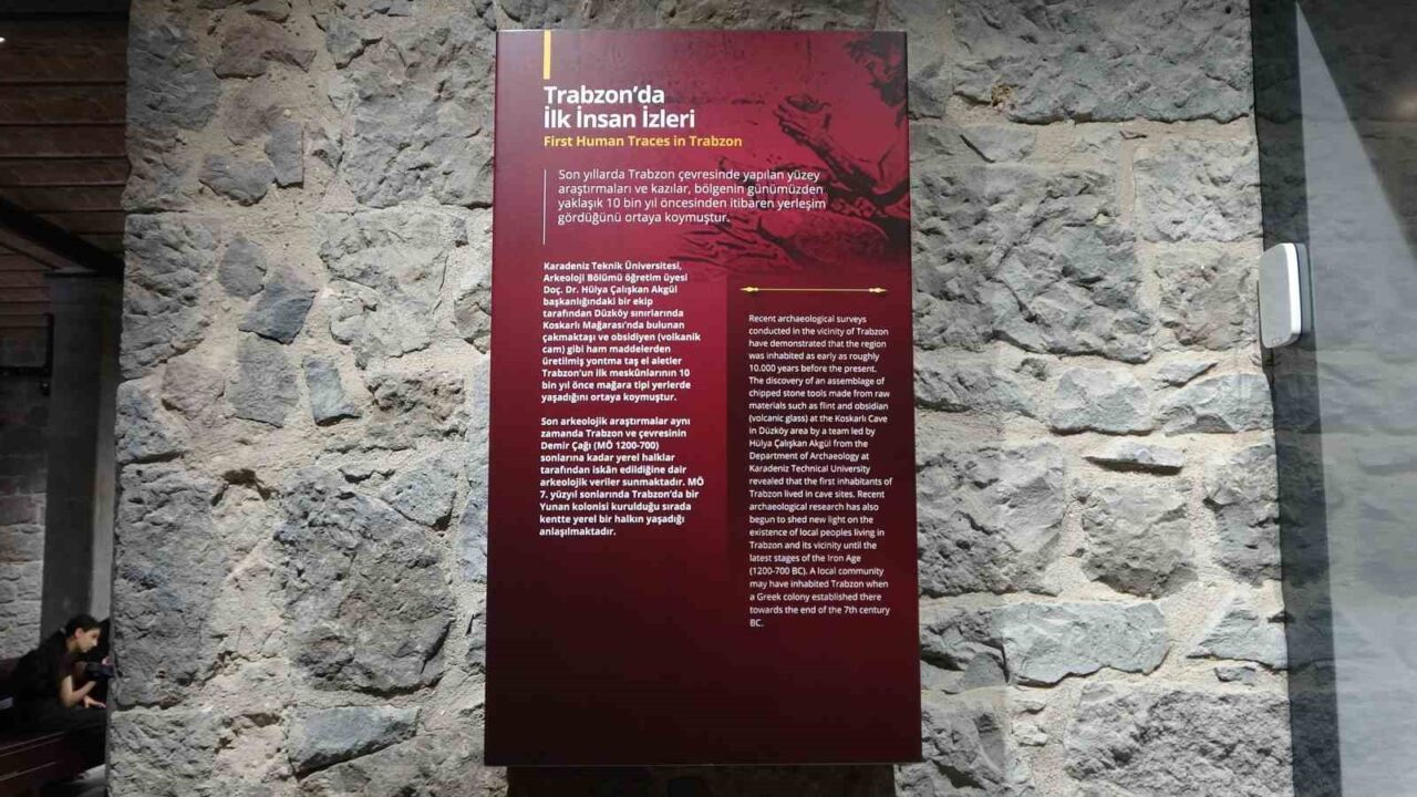 Trabzon’un Düzköy ilçesi sınırları içerisinde yer alan Koskarlı Mağarasında 2024 yılında başlatılan bilimsel arkeolojik kazı çalışmaları sırasında bulunan çakmak taşı ve obsidyen gibi ham maddelerden üretilmiş yontma taş aletler, Trabzon’un ilk meskunlarının 10 bin yıl önce yaşadığını ortaya koyarken, bu döneme ait kalıntılar Trabzon Müzesinde sergileniyor.
