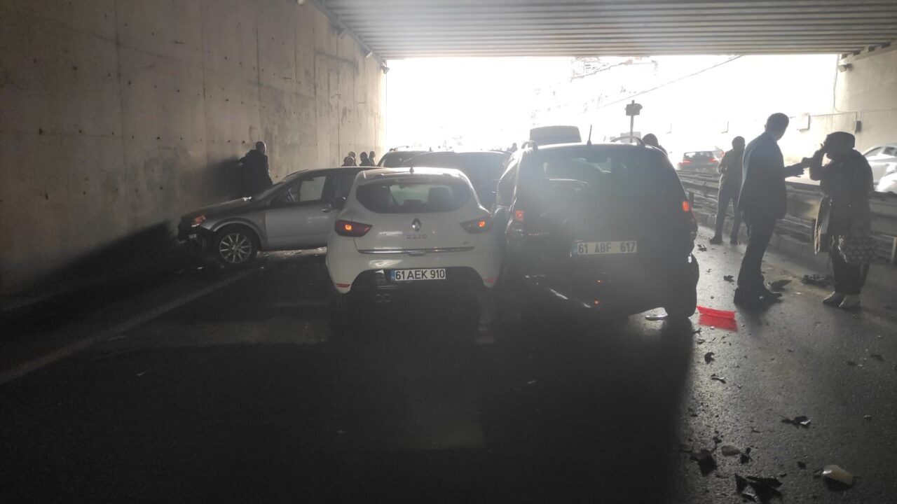 Kaza sabah saatlerinde Çömlekçi mahallesindeki köprüllü alt geçitte meydana geldi. Alınan bilgiye göre, saat 08.00 sıralarında meydana gelen nedeni henüz belirlenemeyen zincirleme kazaya biri öğrenci servisi olmak üzere toplam 25 araç karıştı. Kazada ilk belirlemelere göre 12 kişi çeşitli yerlerinden yaralanırken, yaralılar ambulanslarla KTÜ Tıp Fakültesi Farabi Hastanesi ile Fatih Devlet Hastanesi’ne kaldırıldı. Yaralıların durumlarının iyi olduğu belirtilirken, kaza yapan araçları çekmek için bölgede çalışma başlatıldı.