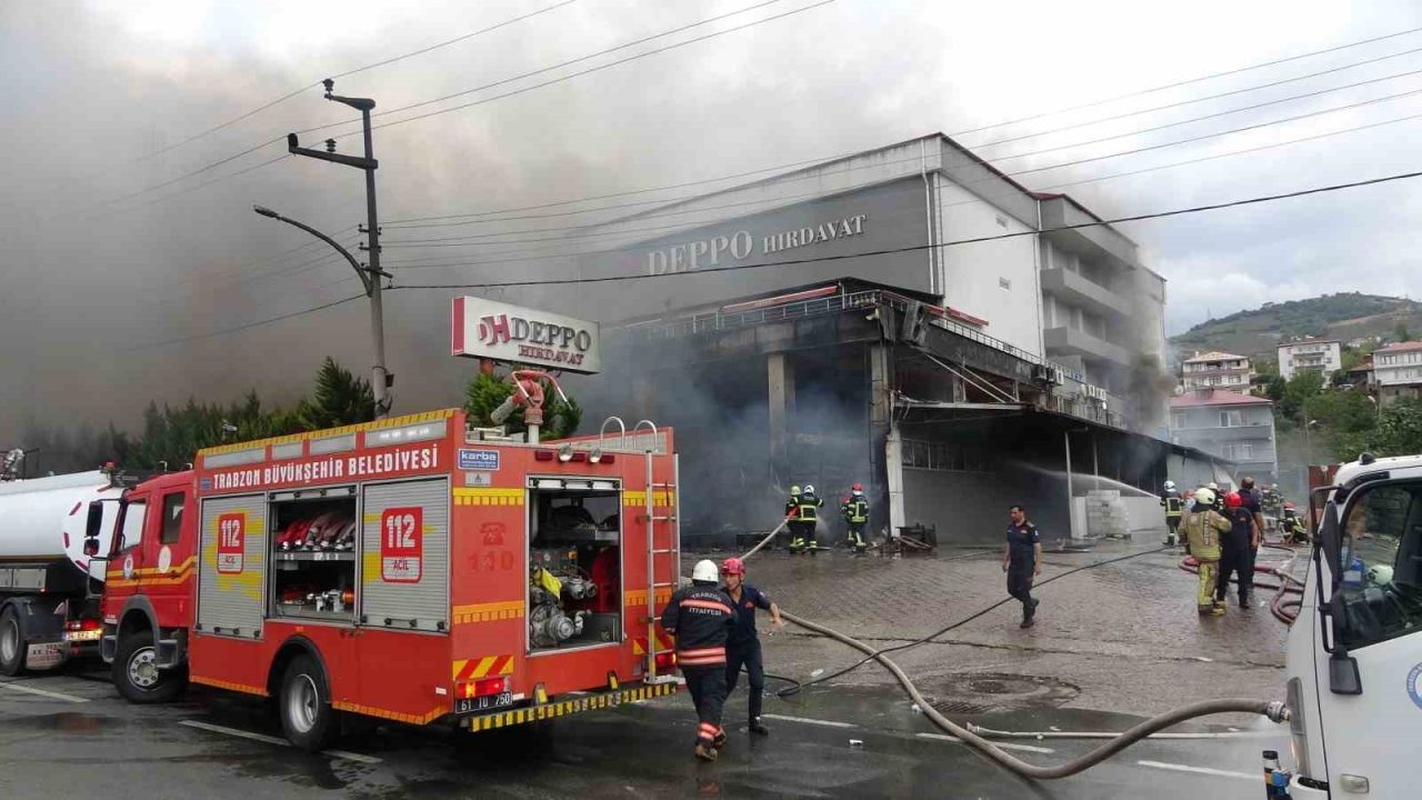 TRABZON’UN AKÇAABAT İLÇESİNE BAĞLI DARICA MAHALLESİNDEKİ ‘DEPPO’ İSİMLİ ALIŞVERİŞ MERKEZİNİN DEPO KISMINDA BİLİNMEYEN BİR NEDENLE YANGIN ÇIKTI.