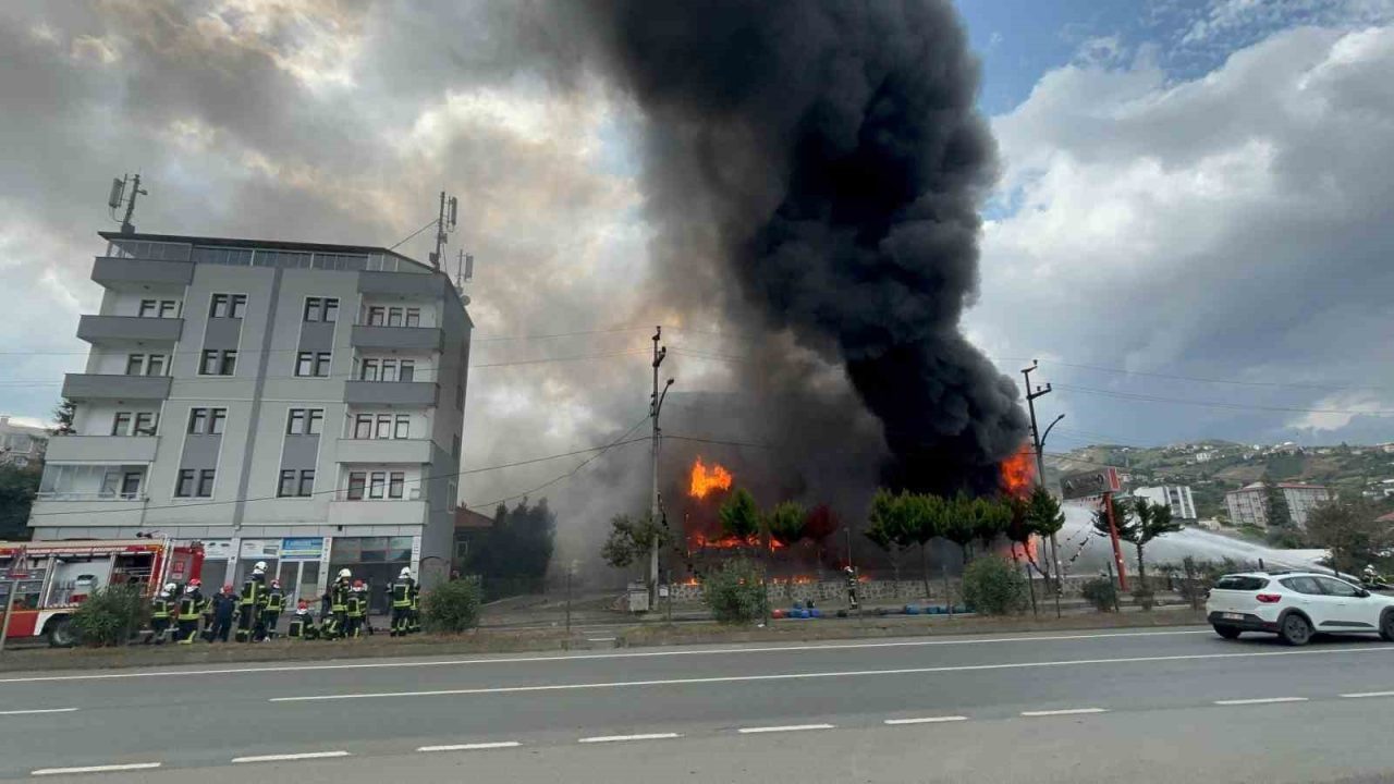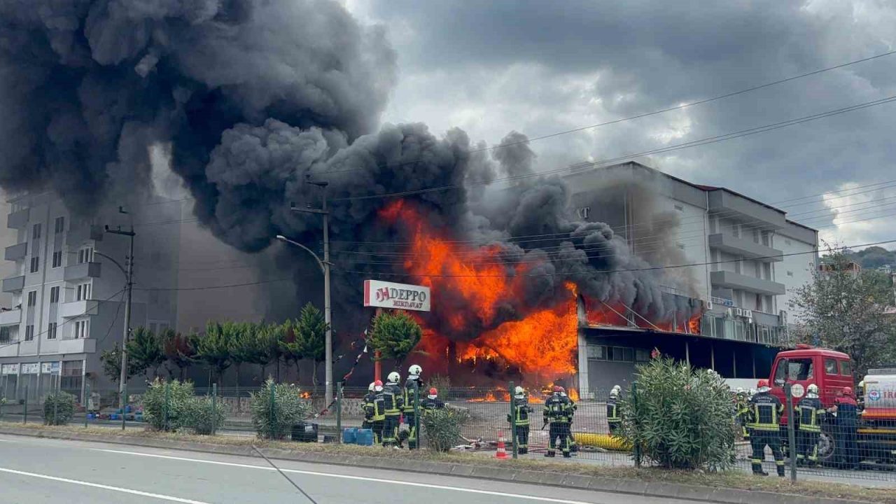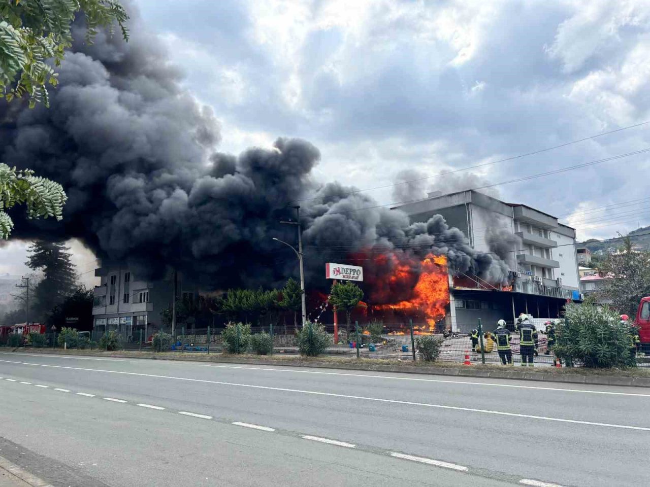 Trabzon’un Akçaabat ilçesinin Darıca mahallesinde ’Deppo’ isimli alışveriş merkezinde yangın söndürme çalışmaları sırasında yangın yeniden alevlendi, alevler tüm binayı sardı.