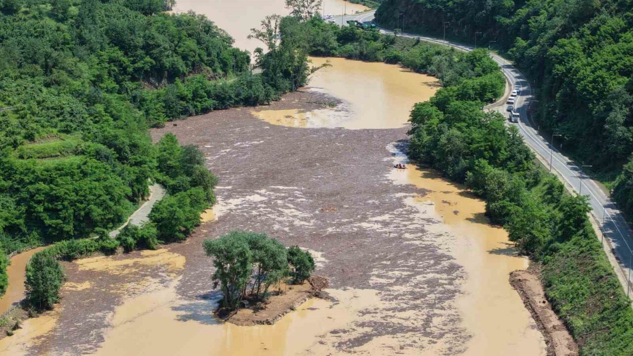 Öte yandan sel sonrası arama çalışmalarının yapıldığı turizm merkezi Sera Gölü’nün yüzeyi odun parçaları ile dolarken, rengi ise kahverengiye büründü.