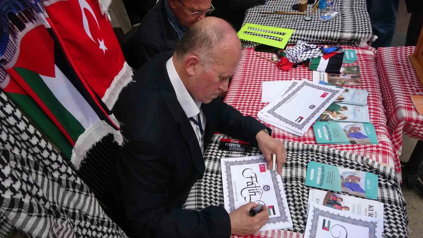 Demir, “Yardımsever insanlarımızın burada Gazze’ye yardımlarını yaparak destek veriyorlar. Bizde burada hem yardımsever kardeşlerimizin isimlerini yazarak onların yapmış olduğu desteğe bir şekilde katkı sunmuş oluyoruz. Hat sanatı Kuran dilidir. Kuran alfabesidir. Asıl mevzu zaten Kuran-ı Kerim’in yazılması mevzusudur. Kuran’a gösterilen hürmetten dolayı hat sanatına ayrıca hürmet gösterilmekte. milletimiz talep ediyor. Gelip isimlerini yazdırıyorlar. Bu vesileyle bizde Gazze’ye bir nebze olsun yardım etmiş bulunmaktayız. Fazla kalabalık olduğu için genelde vatandaşlarımızın taleplerini kırmamaya çalışıyoruz. Çadırımızın burada durmaya devam edecek. Bir etkinlik olarak bunu düzenledik. İnşallah nasip olursa inşallah ilerleyen günlerde tekrar aynı etkinliği yaparız” ifadelerini kullandı.