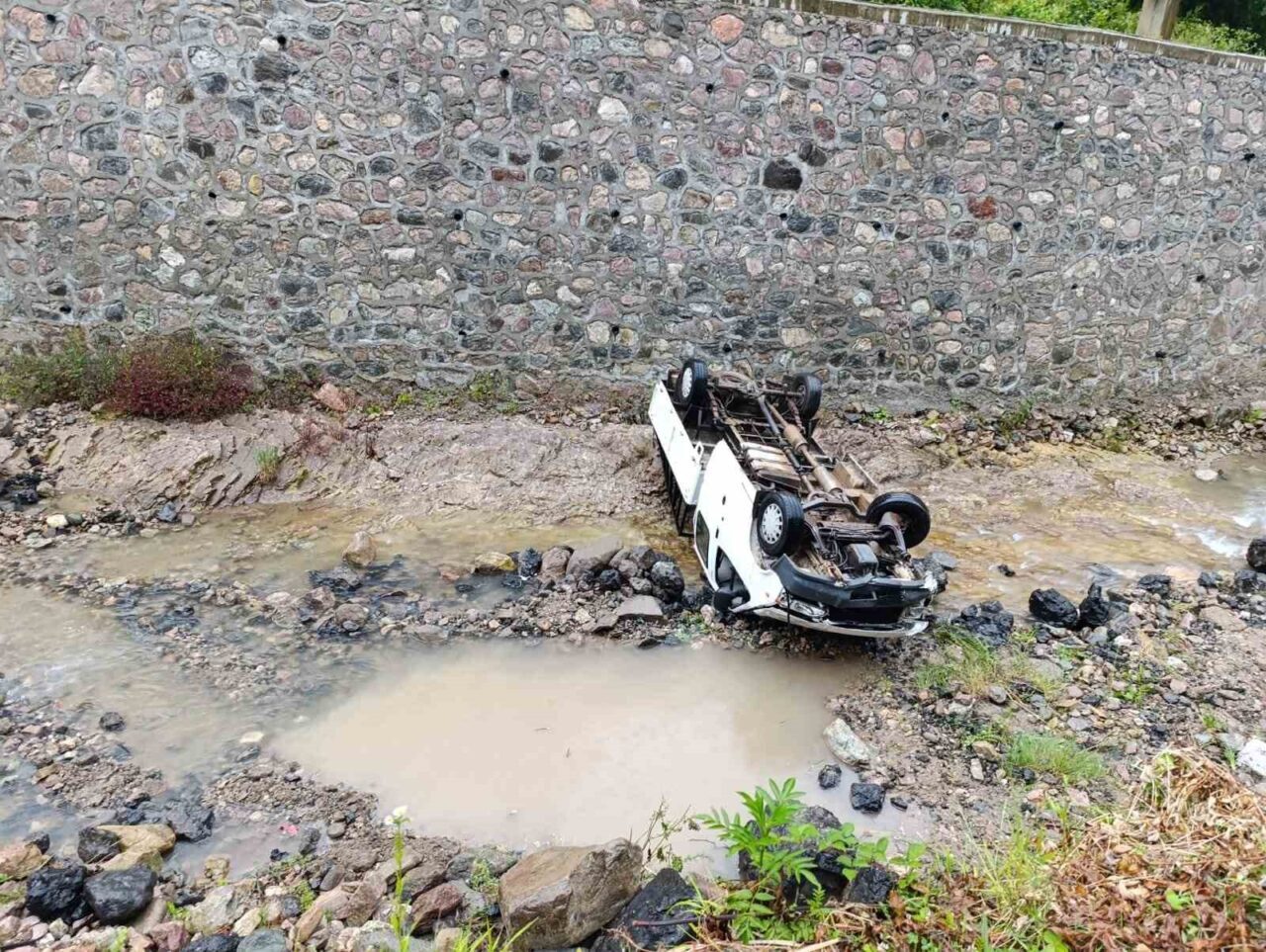 Trabzon’da kamyonetin dereye uçtuğu kazada 2 kişi yaralandı.