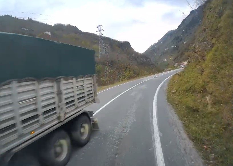 Trabzon-Araklı-Bayburt yolu her gün yeni bir tehlikeyle gündeme geliyor. Ağır tonajlı araçların denetim azlığı nedeniyle bu güzergâhı tercih etmesi, riski daha da artırıyor. Rampalardan hızla inen tırlar, özellikle keskin virajlarda şerit ihlali yaparak karşı yönden gelen araçlar için büyük tehlike oluşturuyor. Son olarak kazaya ramak kala yaşanan bir an, bir aracın kamerasına yansıyarak tehlikeyi gözler önüne serdi.