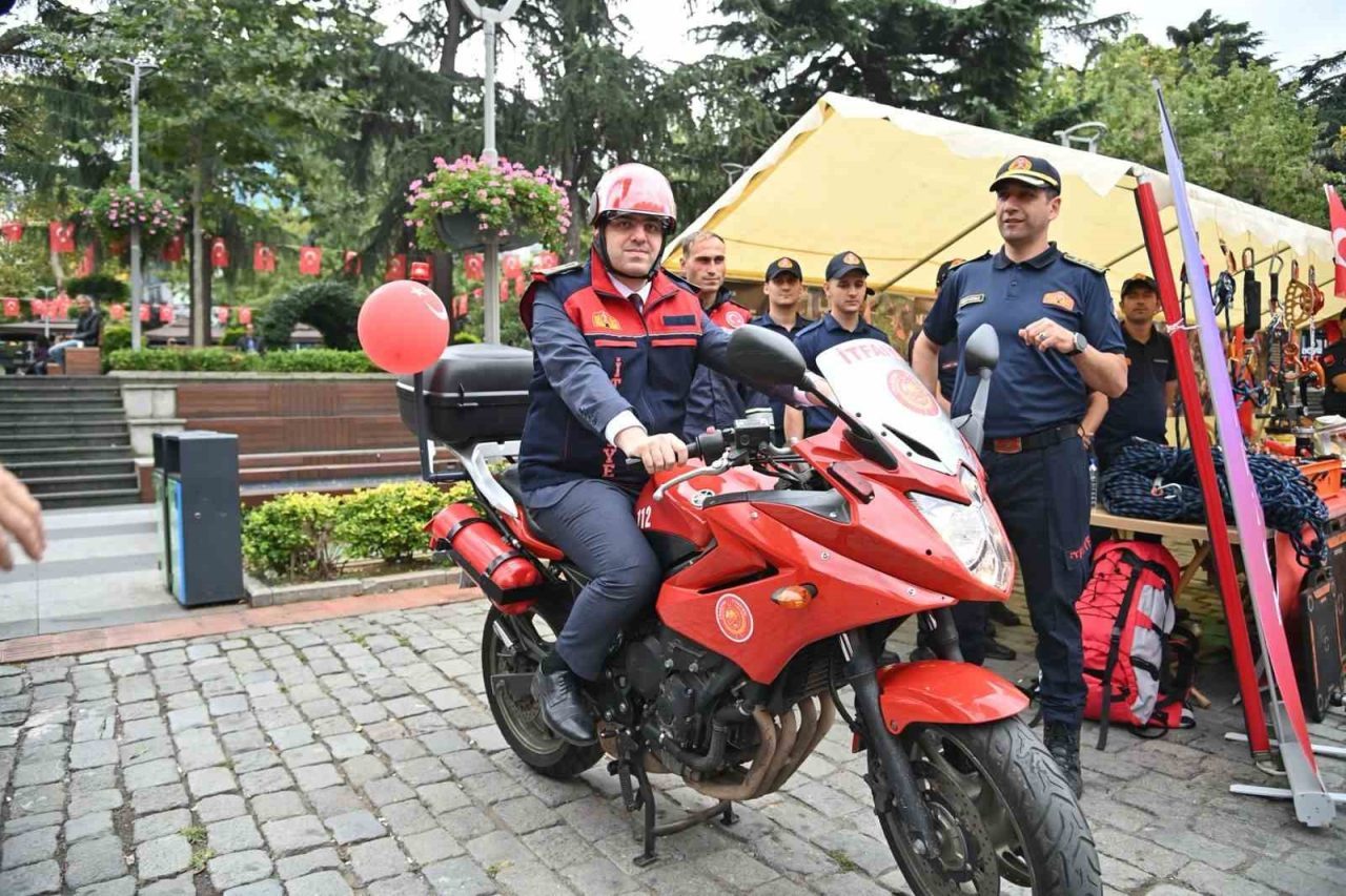 İtfaiye Dairesi Başkanı Mehmet Olcay Bal, itfaiyecilerin yangın, doğal afetler ve kazalar başta olmak üzere çok çeşitli vakalara müdahale ettiklerini belirterek, “Araç ve ekipmanlarımızı sürekli yeniliyor, parsonelimizin eğitimine büyük önem veriyoruz. Her bireyin başta yangın olmak üzere önlemler konusunda bilinçli olması gerekiyor. Toplumsal farkındalık yaratmak için de çeşitli etkinlikler yapıyoruz. Şimdi motorlu itfaiye timi kurduk. Bu tim sayesinde, araçla girilemeyecek dar sokaklar başta olmak üzere küçük çaplı vakalara hızlı şekilde müdahale edeceğiz. Örneğin bir çöp konteynırı yangınına bütük araç ve ekip değil motorlu tim gidecek. Böylece kamu kaynaklarını da verimli kullanmış olacağız. Teşkilatımızın kuruluş yıl dönümünü ve kahraman itfaiyecilerimizin haftasını kutluyorum” diye konuştu.