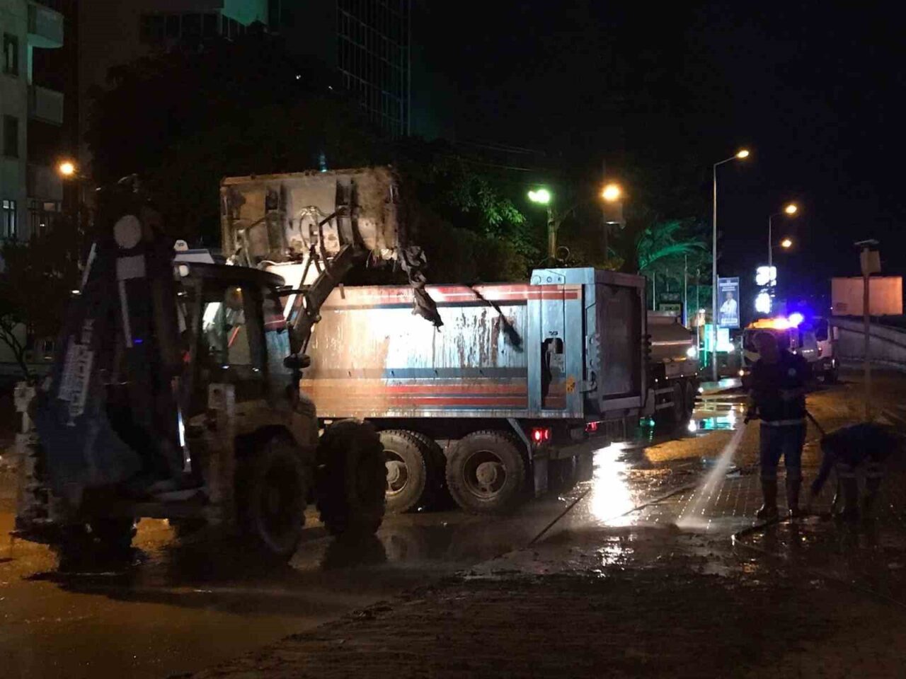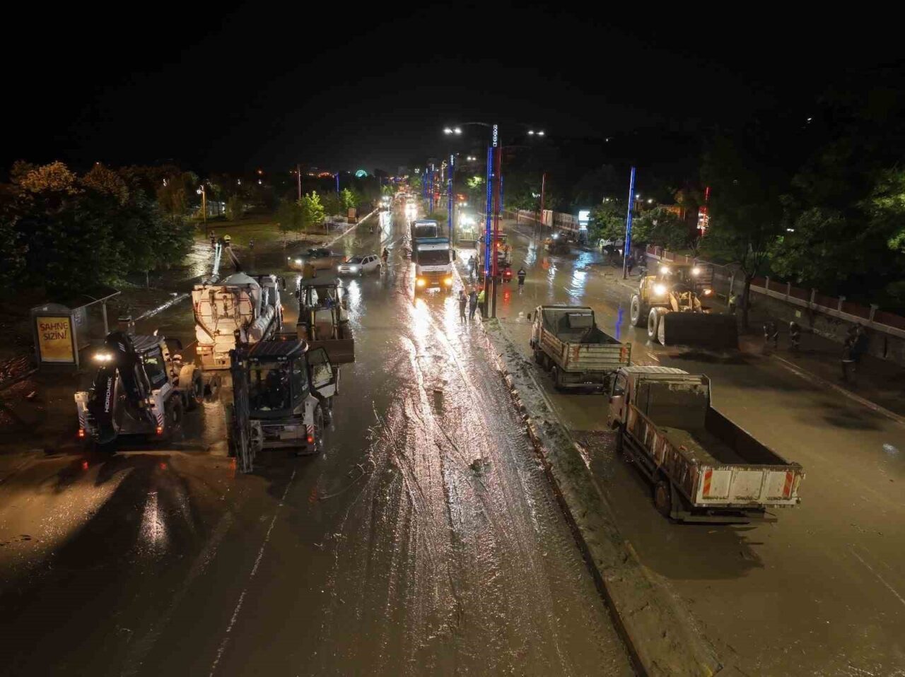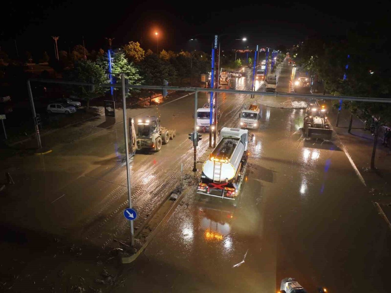 Büyükşehir Belediyesi ekipleri, sel sularının getirdiği çamurları temizleyerek gün ağardığında her iki bölgede hayatı normale döndürmek için büyük gayret sarf ediyor.