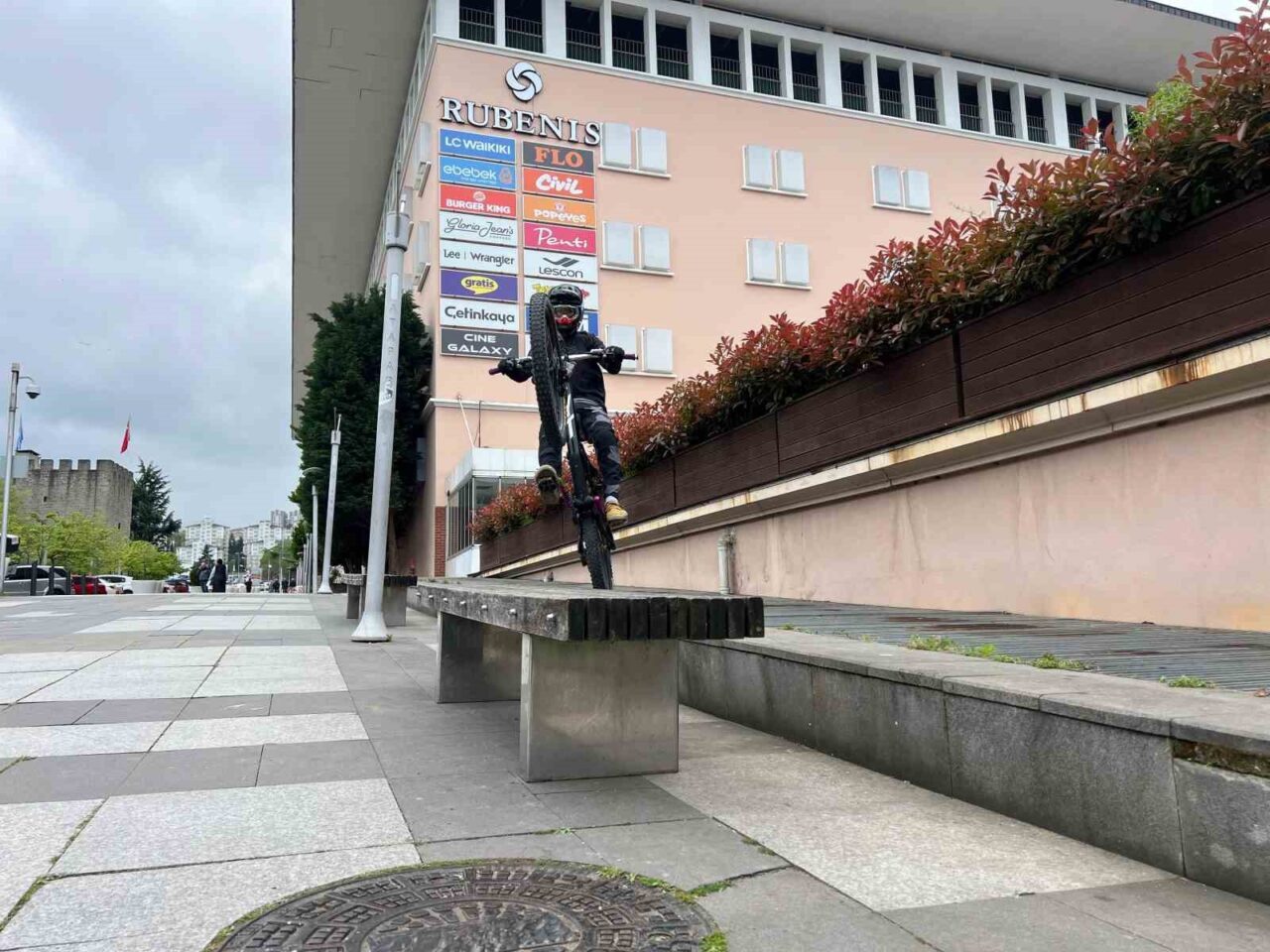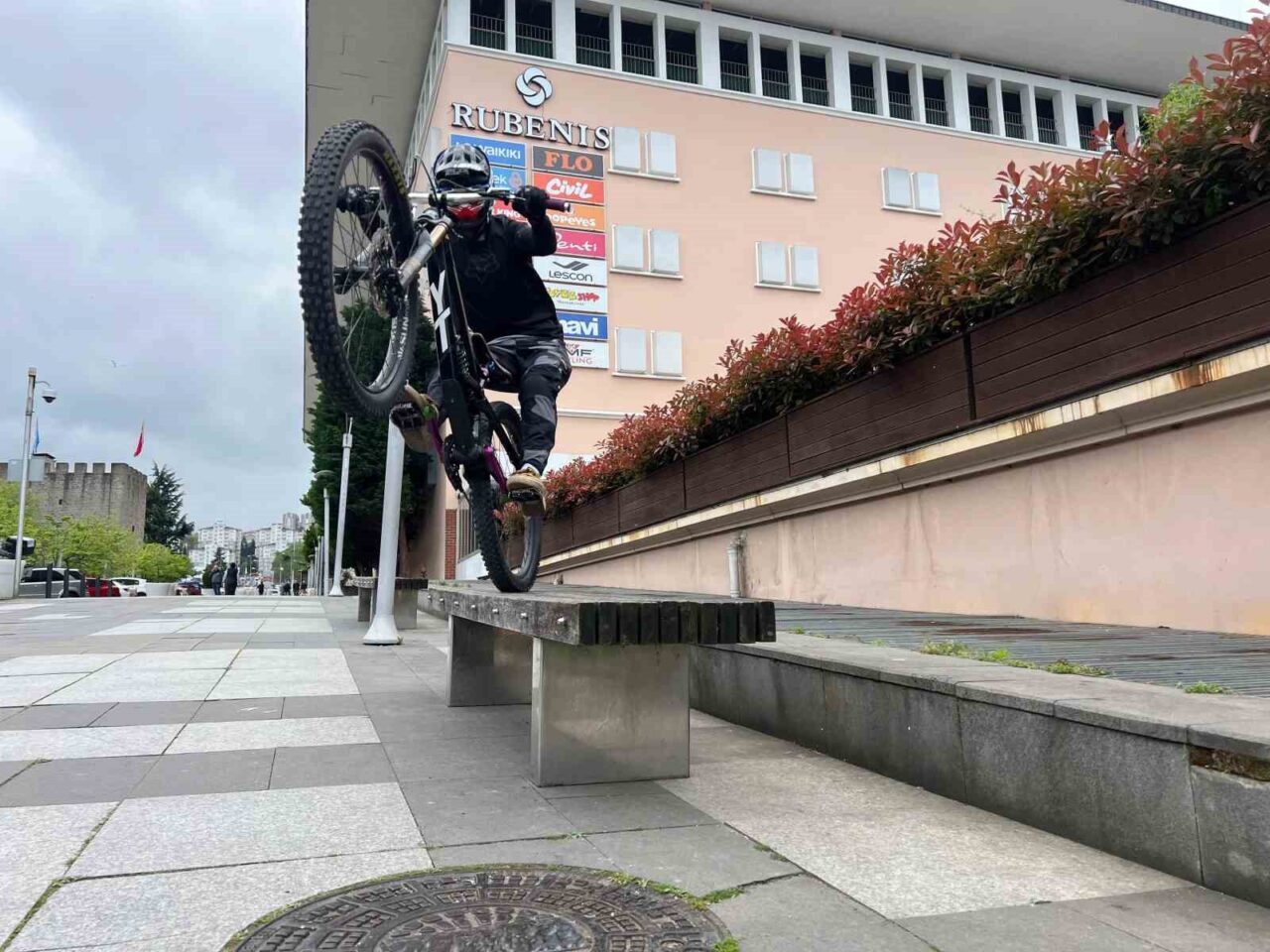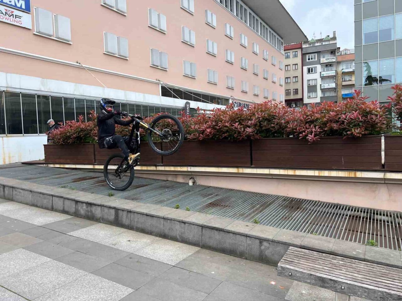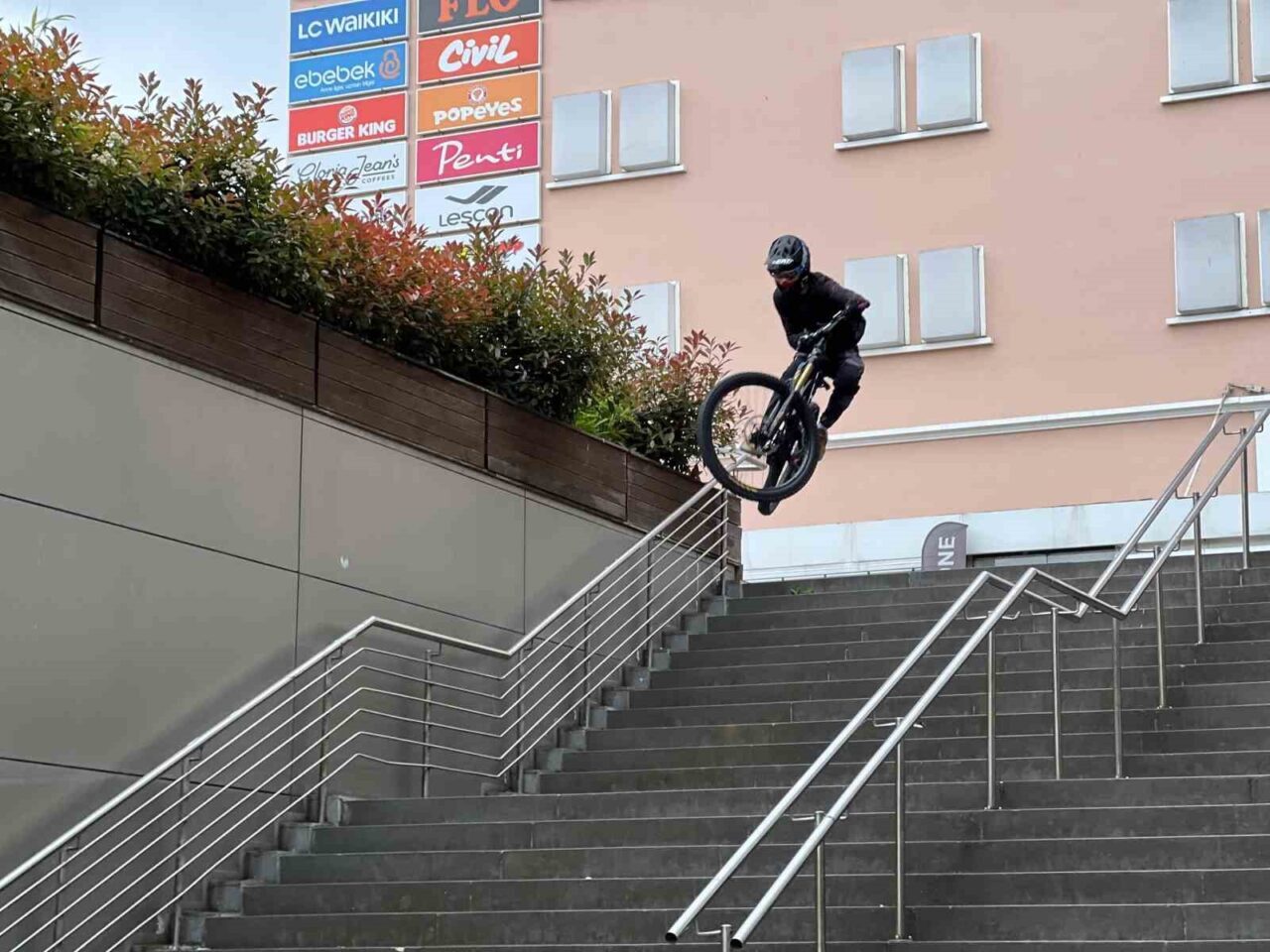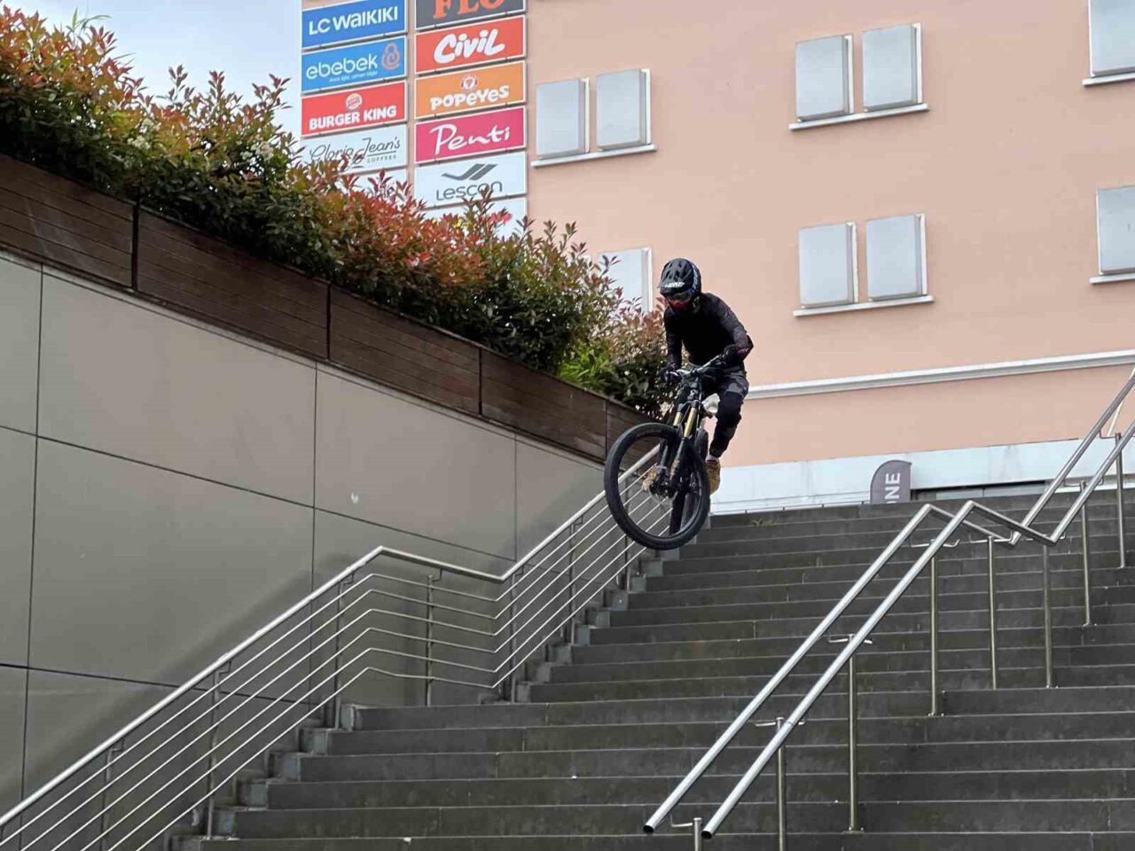Trabzon’da yaşayan ve liseyi bitirdikten sonra doğalgaz sektöründe çalışmaya başlayan Samet Demirbaş (20), bisiklet tutkusunu bir adım öteye taşıdı. Kendi imkanlarıyla çoğu parçasını yurtdışından getirerek 120 bin TL’ye özel bir bisiklet oluşturan Demirbaş, dik merdivenlerden bisikleti ile atlayarak adrenalin dolu gösteriler yapıyor. Cesur performansları ile kısa sürede binlerce takipçiye ulaşan Trabzonlu genç yetenek, çevre illere de giderek dik merdivenlerde bisikleti ile gösteri yapıyor.