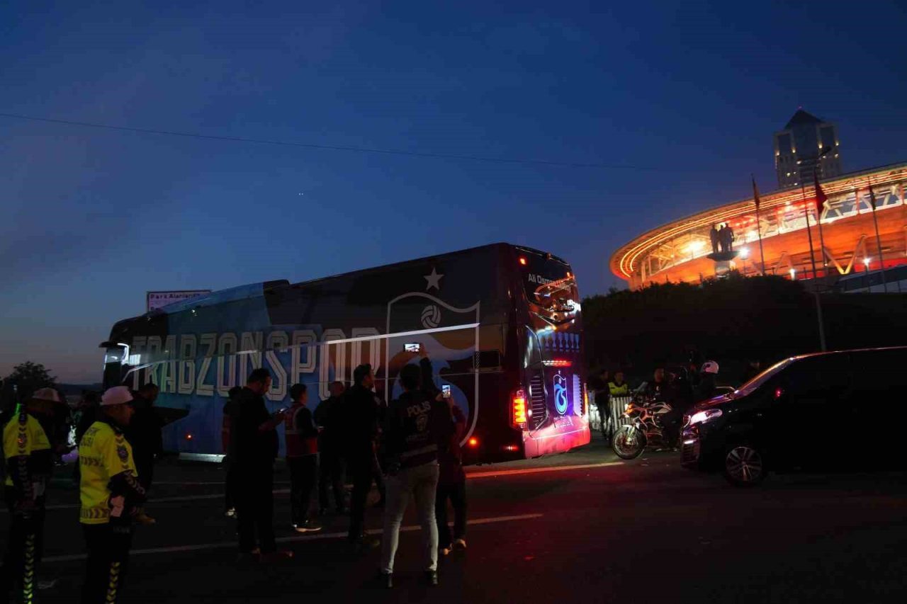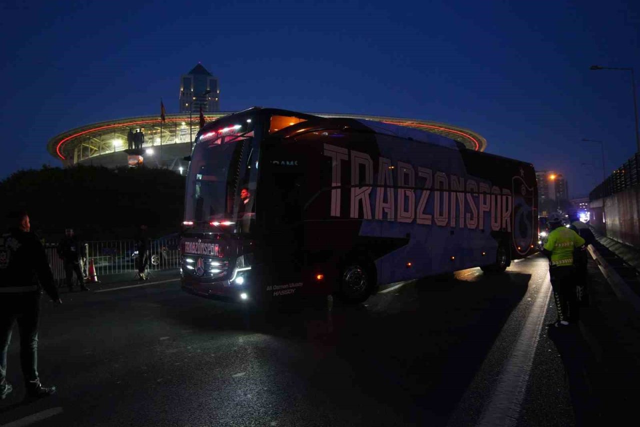 Trendyol Süper Lig’in 11. haftasında Trabzonspor, saat 20.00’de Galatasaray’a konuk olacak. Mücadele için dün İstanbul’a gelen bordo-mavililer, akşam saatlerinde konakladığı otelden ayrılarak, RAMS Park’a ulaştı. Bordo-mavili kafile, yoğun güvenlik önlemleri altında stada giriş yaptı.