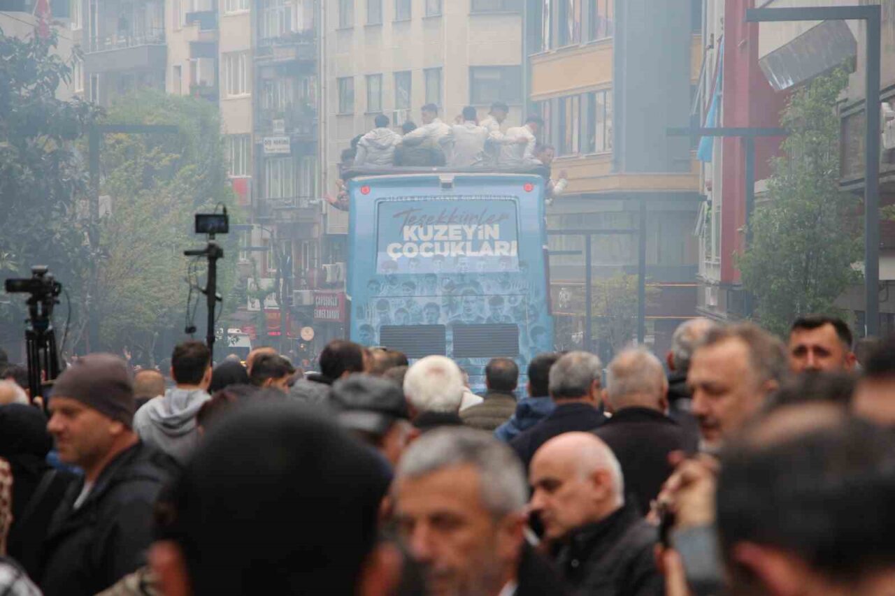 TRABZON HAVALİMANI’NDA TARAFTARLAR TARAFINDAN KARŞILANAN BORDO-MAVİLİ TAKIM ,TRABZON BÜYÜKŞEHİR BELEDİYESİ’NİN HAZIRLADIĞI ÜSTÜ AÇIK OTOBÜS İLE TRABZON SOKAKLARINDA TURLADI.