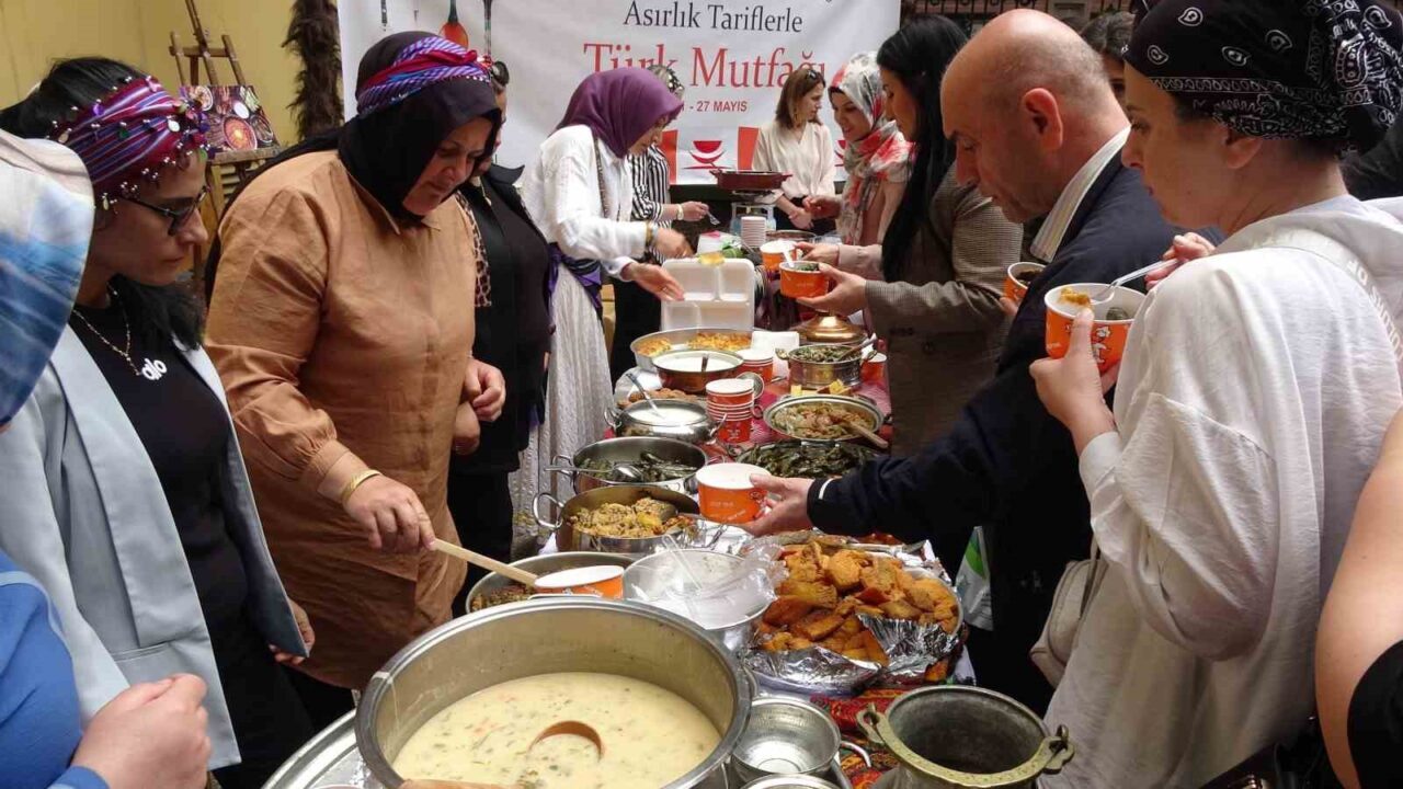 İl Kültür ve Turizm Müdürlüğü bahçesinde düzenlenen etkinlikte yöresel mutfaktan örnekler sergilenerek katılımcılara yapılan yemekler ikram edildi.