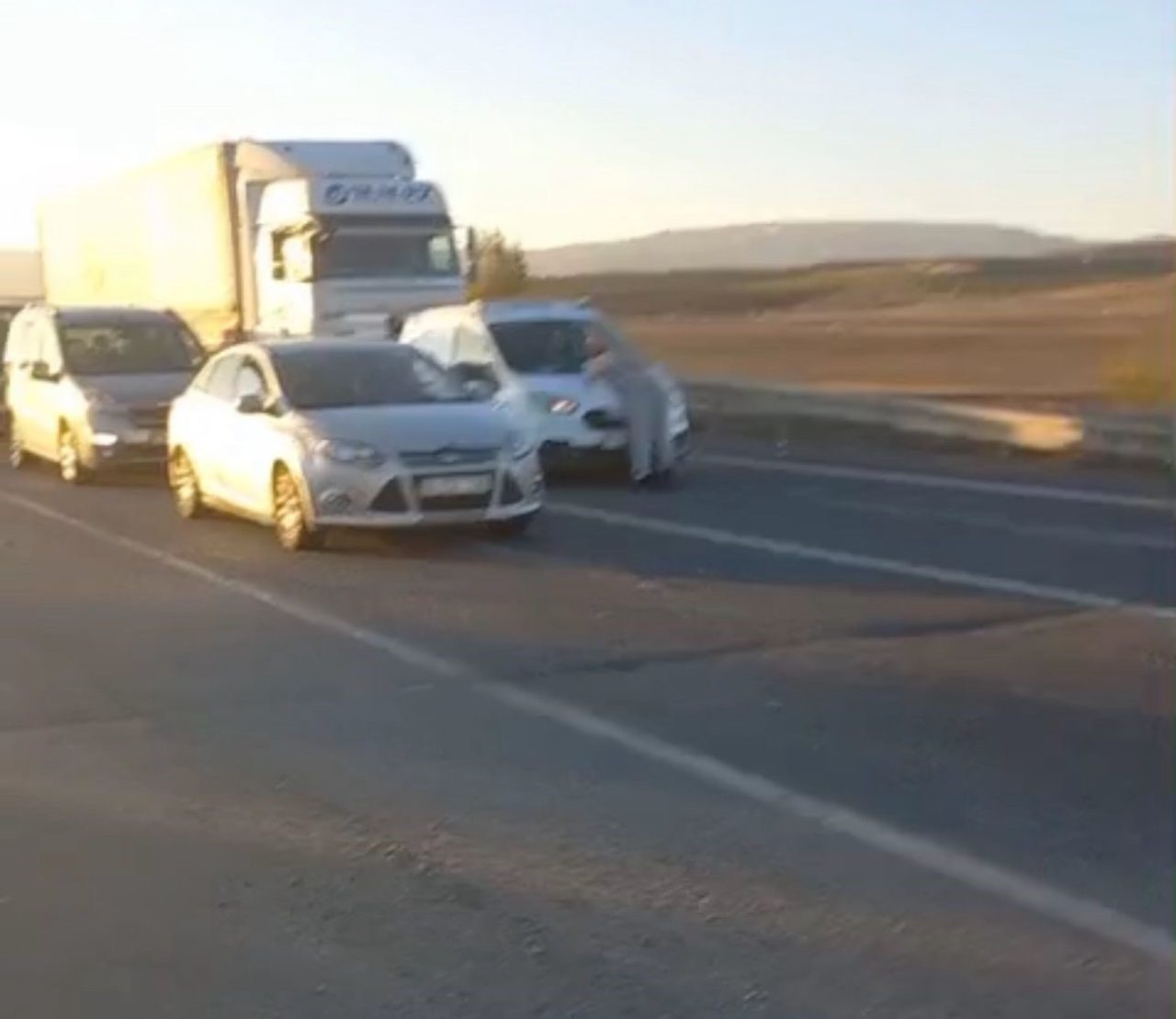 Erzurum’un Horasan ilçesinde Sanayi Kavşağı’nda trafikte bekleyen sürücüler, akıl almaz bir olaya tanık oldu.