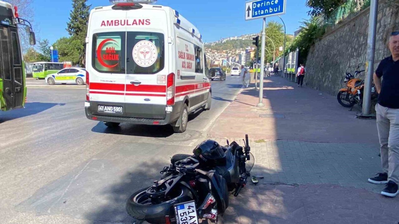 Kocaeli’nin İzmit ilçesinde trafik ışıklarında yolun karşısına geçmeye çalışan yayaya motosikletin çarpması sonucu sürücü ve yaya yaralandı.