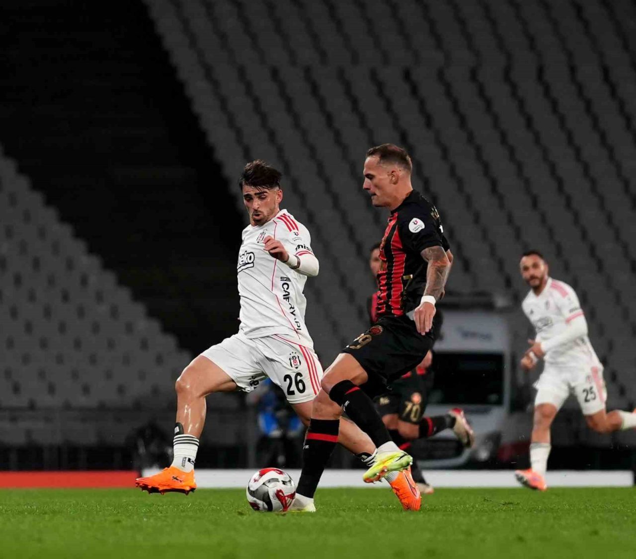 8. dakikada sol taraftan Orkun Kökçü’nün kullandığı köşe atışında, ön direkte Jota Silva’nın kafa vuruşunda kaleci Ivo Grbic topu çeldi.