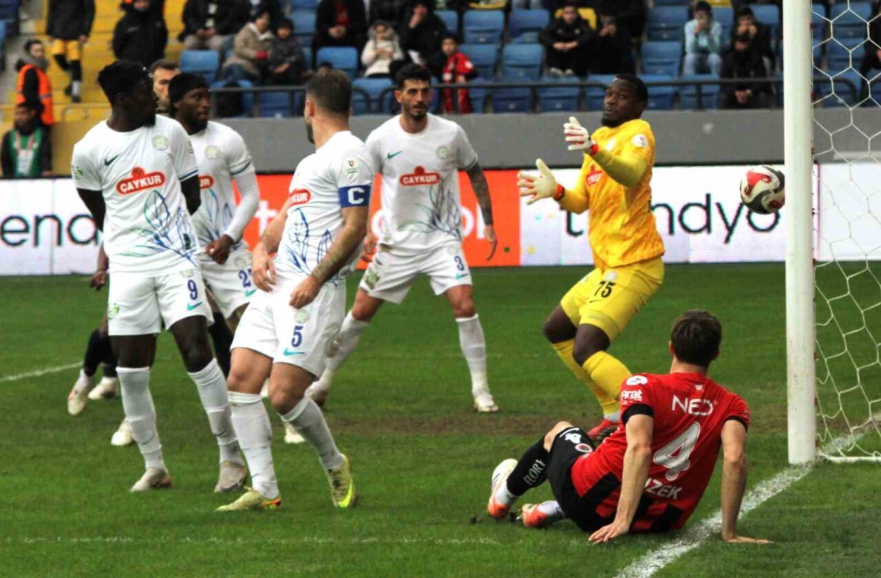 14. dakikada Gençlerbirliği’nin atağında Dele-Bashiru topu kazandı ve pasını sağ tarafındaki Oğulcan’a aktardı. Oğulcan’ın kale sahasına çevirdiği topa Rizespor savunmasında Samet, ters vuruş yaparak meşin yuvarlağı kendi ağlarına gönderdi.