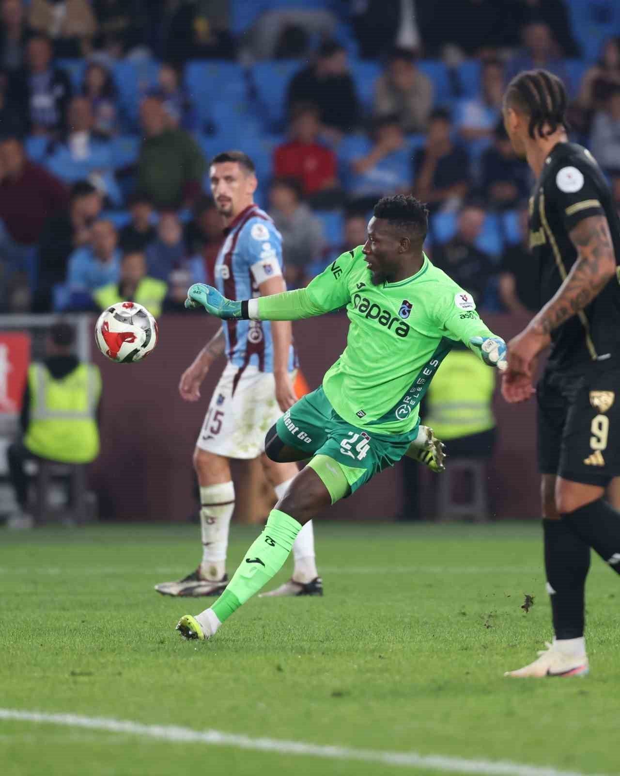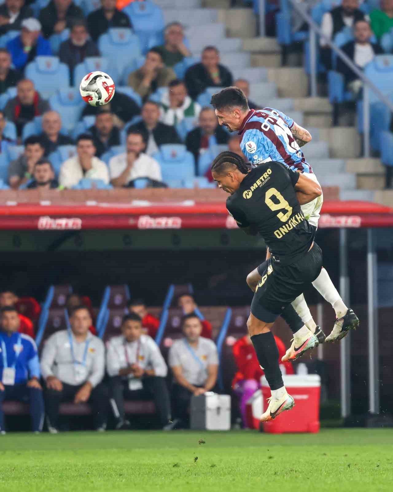 34. dakikada Trabzonspor’un sol taraftan kullandığı korner atışında Onuachu’nun kafa vuruşunda top üst direkten geri döndü.