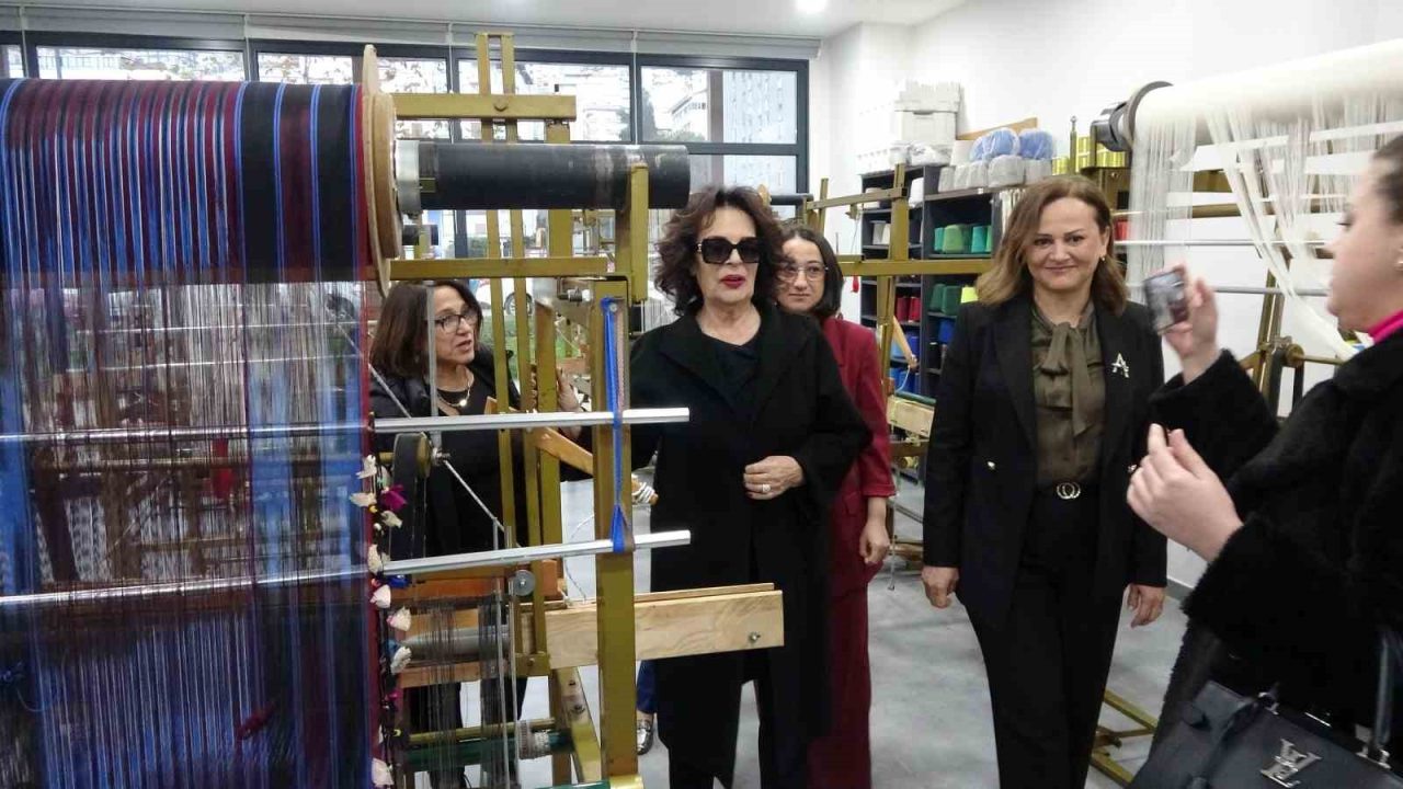 Burada atölyeleri gezen Koçyiğit’e Trabzon Büyükşehir Belediye Başkanı Ahmet Metin Genç’in eşi Arzu Genç eşlik ederken, Koçyiğit, kadınların sergilediği ürünleri hayranlıkla inceledi.