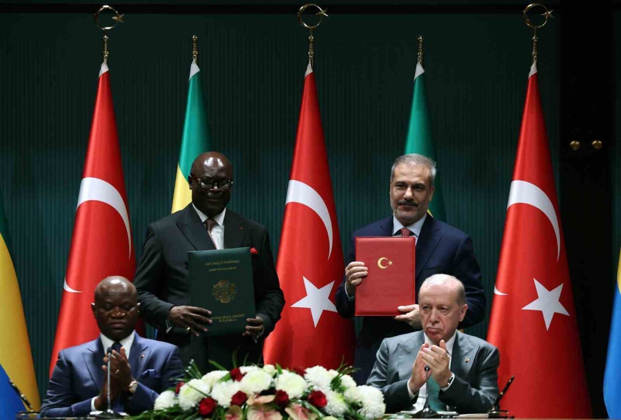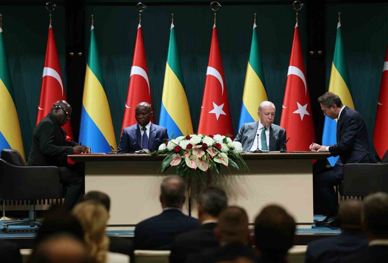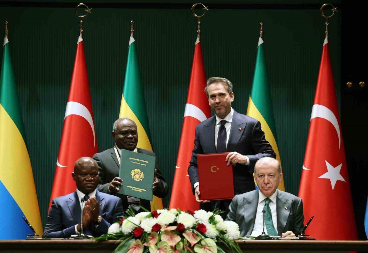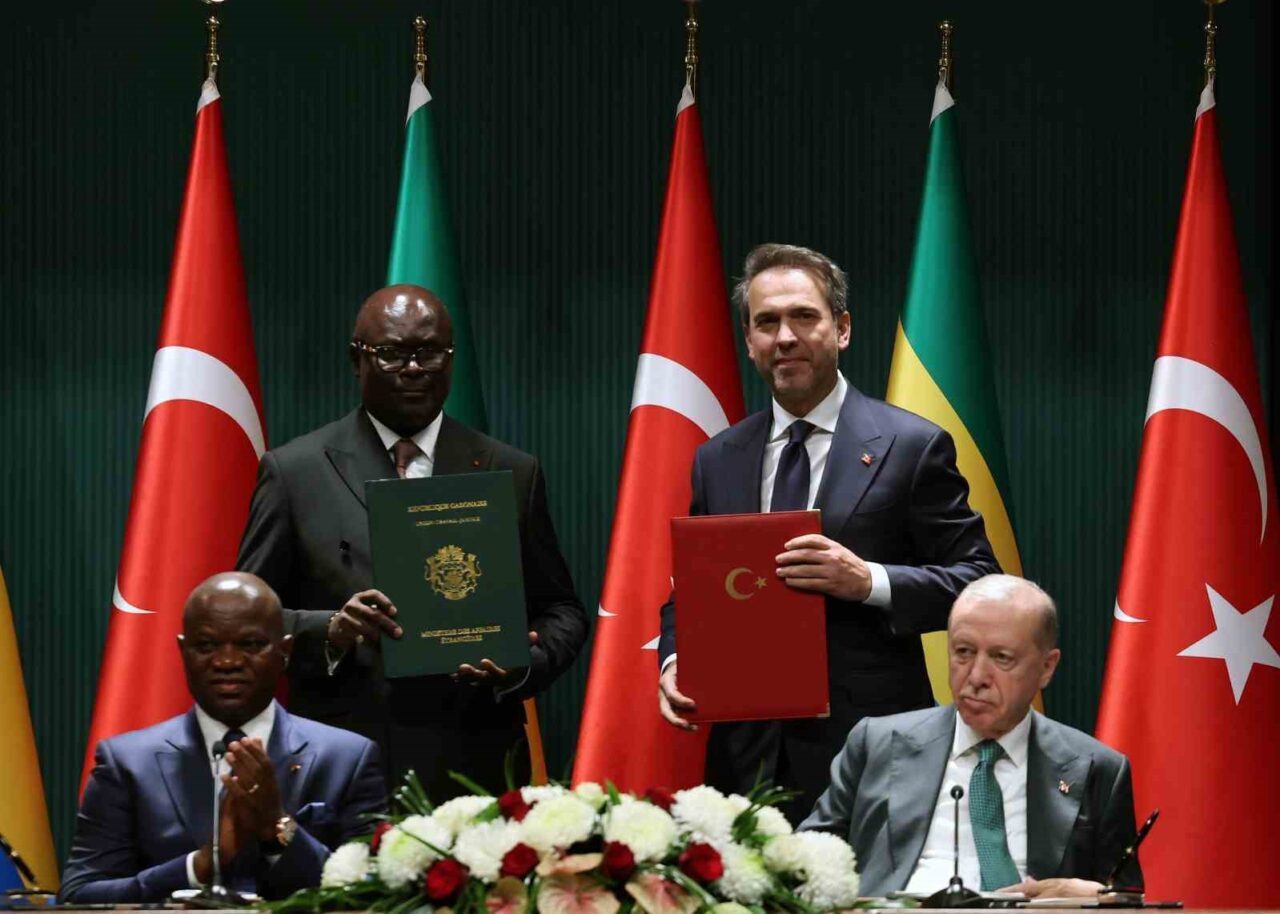 Cumhurbaşkanı Recep Tayyip Erdoğan ile Gabon Cumhurbaşkanı Brice Clotaire Oligui Nguema’nın huzurunda Ankara’da düzenlenen törenle, iki ülke arasında çeşitli alanlarda iş birliklerini içeren 8 anlaşma imzalandı.