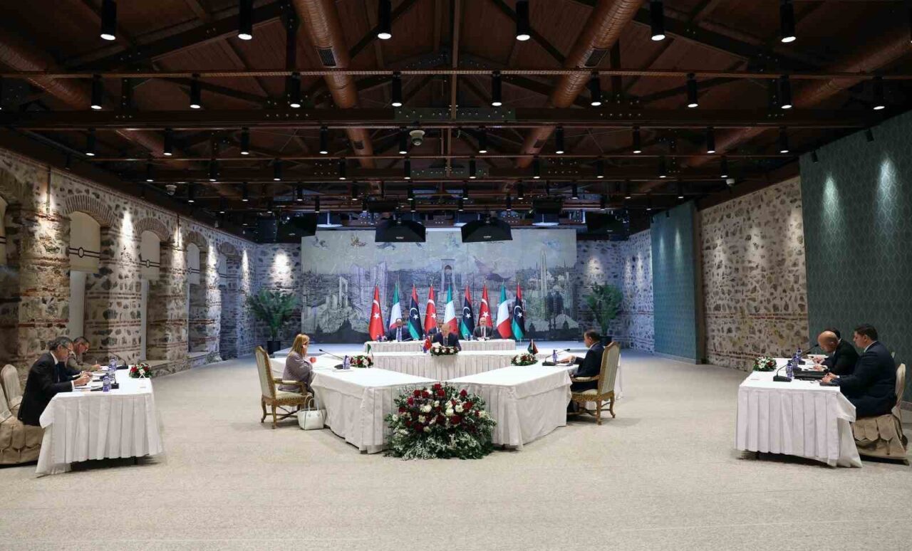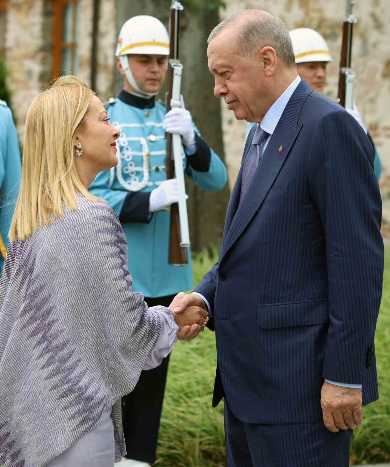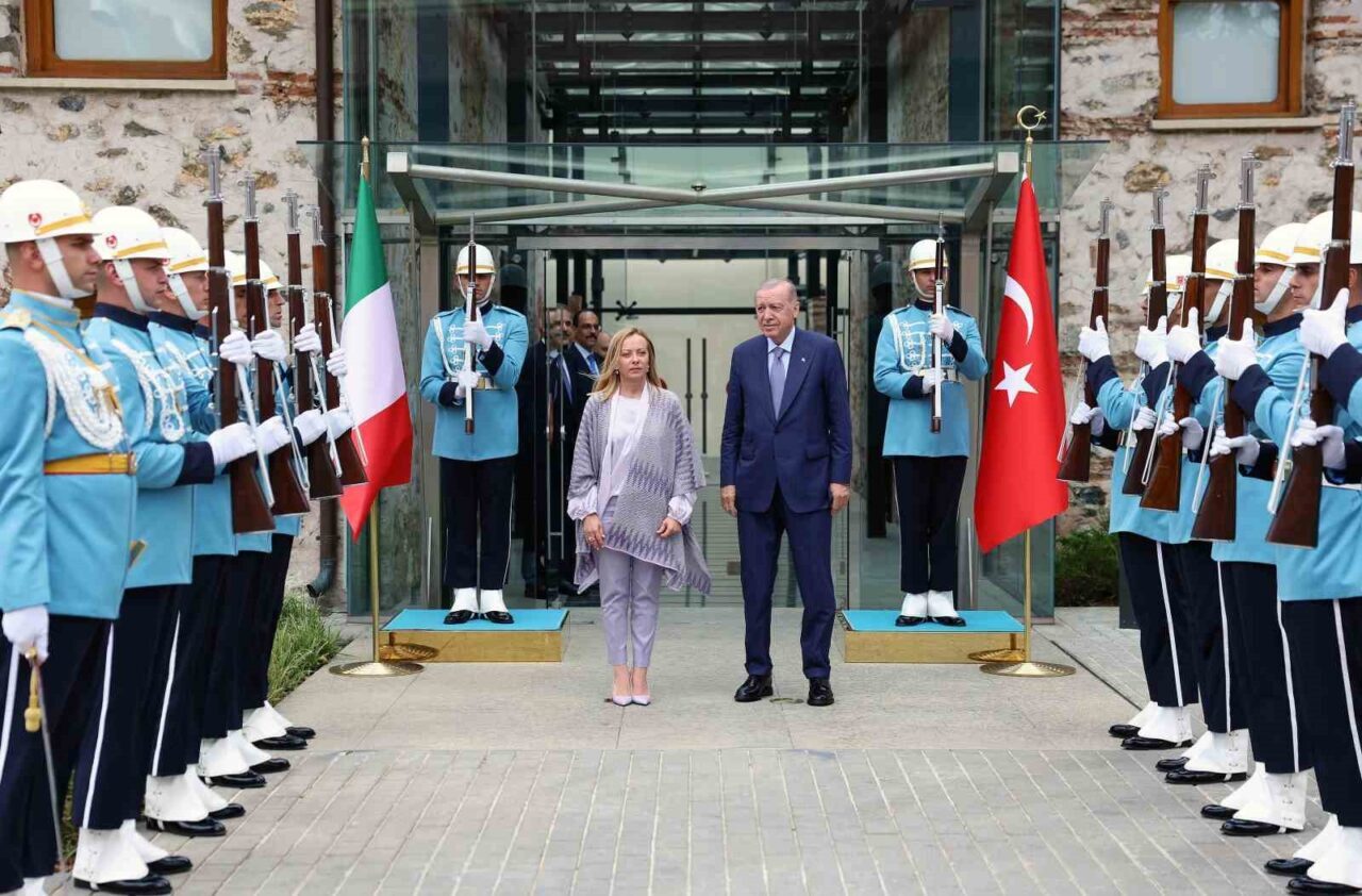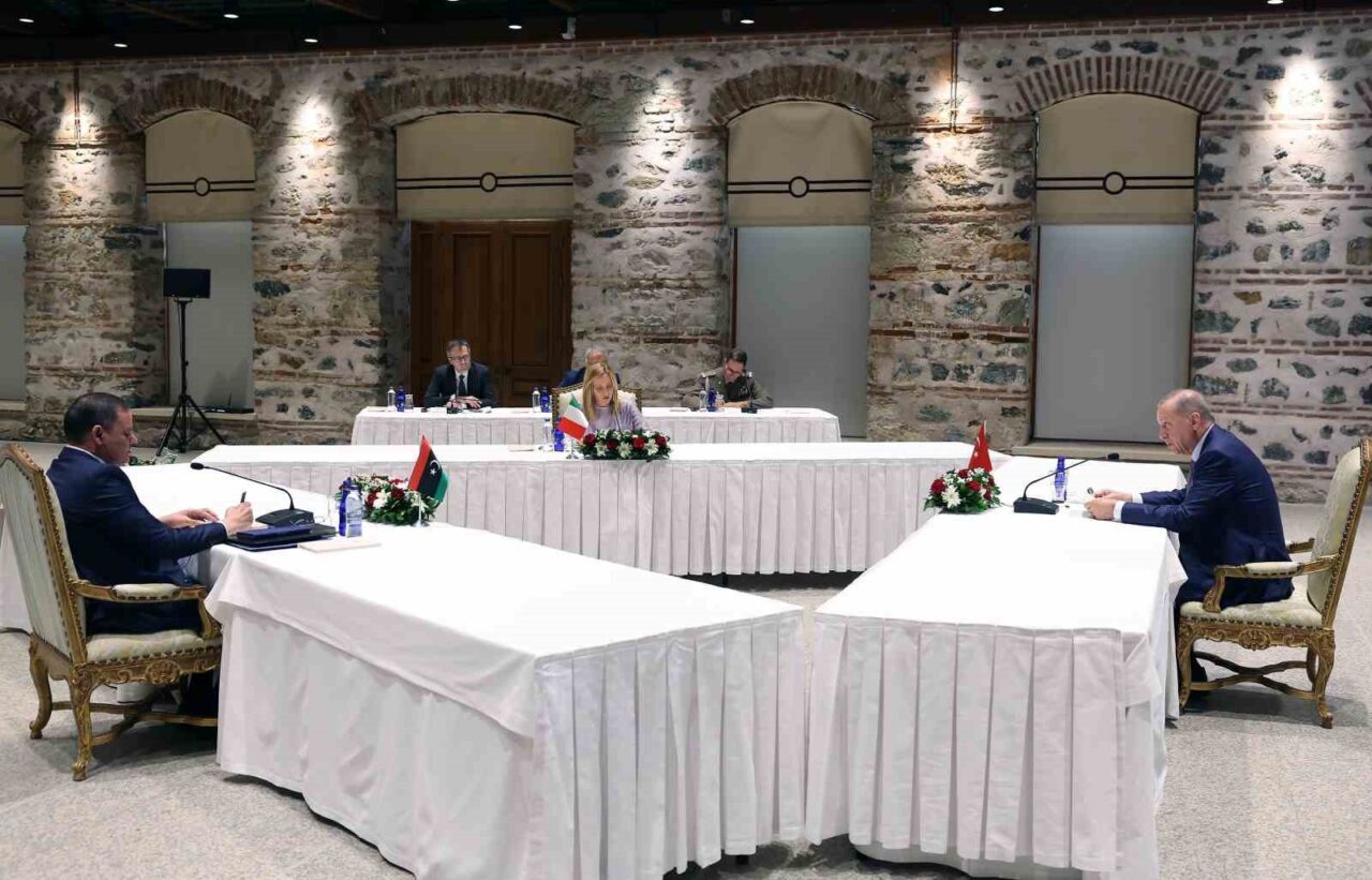Cumhurbaşkanı Recep Tayyip Erdoğan, İtalya Başbakanı Giorgia Meloni ve Libya Milli Birlik Hükümeti Başbakanı Abdülhamid Dibeybe’yi İstanbul’da ağırladı. Cumhurbaşkanlığı Dolmabahçe Çalışma Ofisi’ndeki Türkiye-İtalya-Libya İş Birliği Zirvesi için Cumhurbaşkanı Erdoğan, liderleri ayrı ayrı karşıladı.
