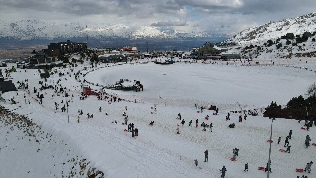 Ergan Dağı, ziyaretçi akınına uğradı. Erzincan’da bulunan kayak merkezinde oluşan yoğunluk havadan kaydedildi. Kış turizminin önemli destinasyonları arasında yer alan Ergan Dağı Kayak Merkezi, özellikle vatandaşların tercihi oluyor. Sabahın erken saatlerinden itibaren pistlere çıkan kayak severler, hem spor yaptı hem de güneşli havanın tadını çıkardı.
