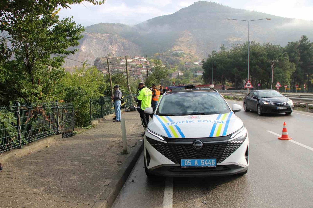 Amasya’da sürücüsünün direksiyon hâkimiyetini kaybettiği otomobil, bariyerlere çarpıp yoldan yaklaşık 5 metre aşağıdaki bahçeye uçtu. Kazada 4 üniversite öğrencisi yaralandı.
