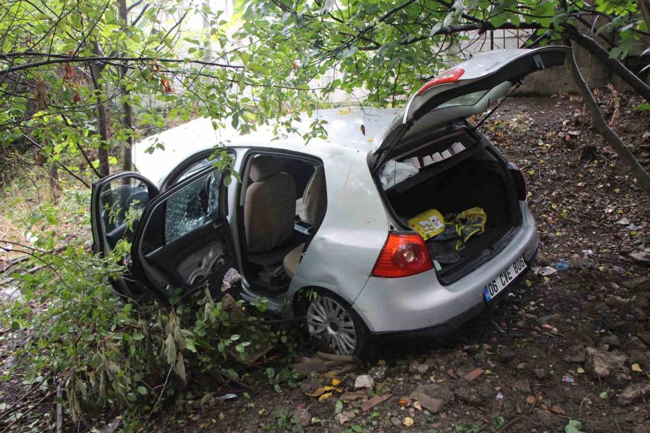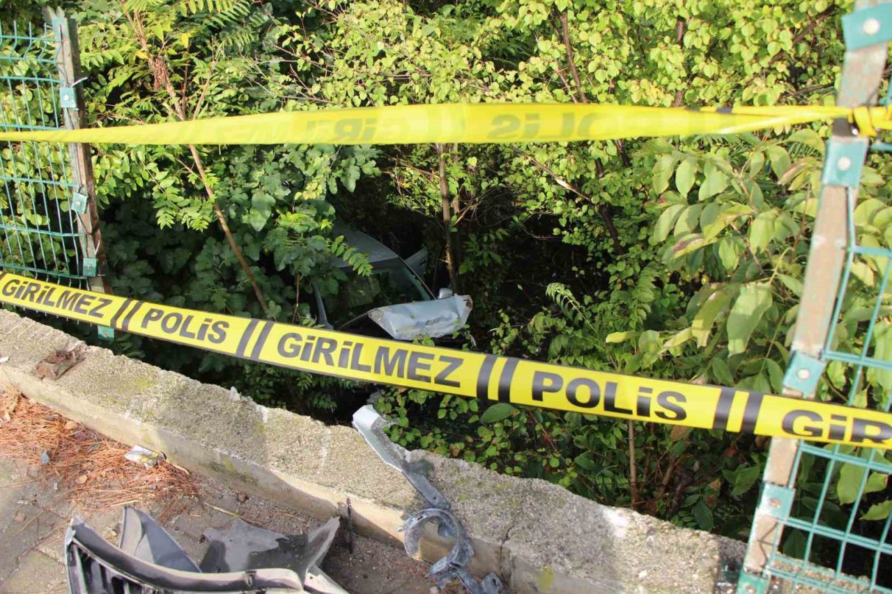 Bahçedeki otomobil vinçle çıkartıldı. Polis ekipleri kazayla ilgili inceleme başlattı.