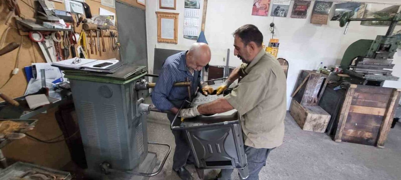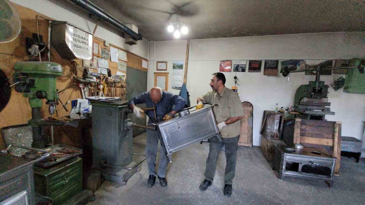 Erzincan’ın Kemaliye ilçesinde Mehmet Akbaş çocukluk yıllarından itibaren dedesinden, babasından öğrendiği sobacılık mesleğini sürdürmeye çalışıyor.